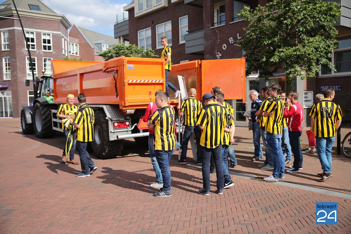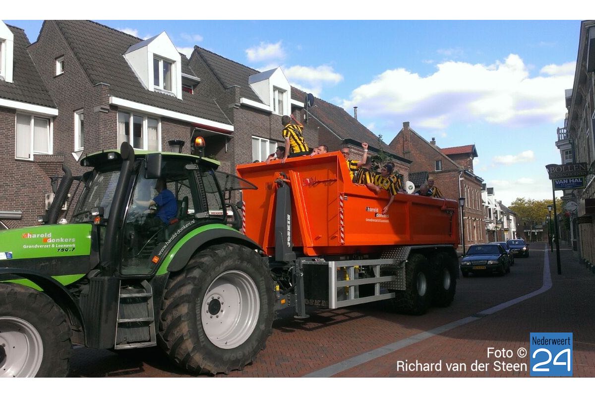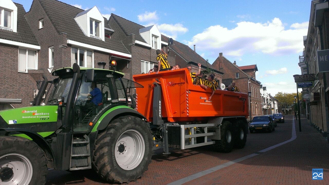 Rond de klok van vijf ging het gezelschap naar café De Kleine Winst waar ze op een tractor met kar stapten om een rondje door Nederweert en natuurlijk Ospel te maken. Aansluitend gaat het gezelschap nog naar Wups Pub om rond 20.00 weer bij Eetcafé De Kleine Winst aan te schuiven. Naar verwachting zal het nog lang onrustig blijven in de straten van Nederweert.