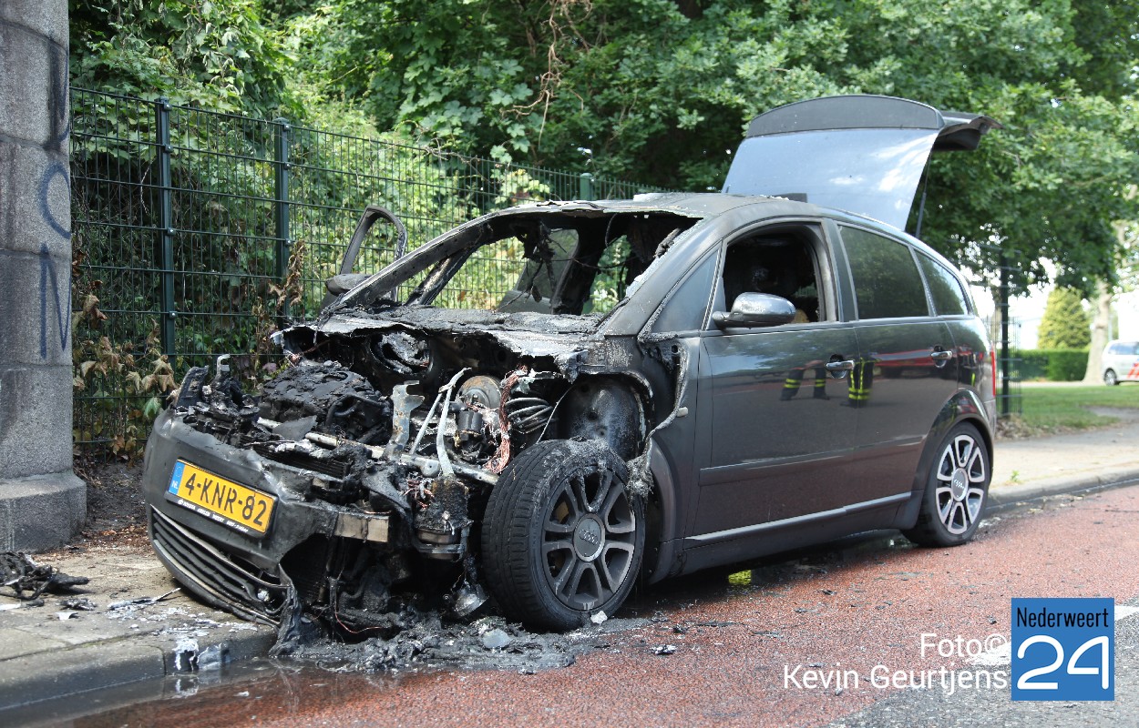 Een gedeelte van de Maaseikerweg werd tijdelijk afgesloten voor het verkeer. De personenauto is volledig uitgebrand.