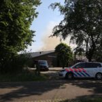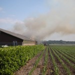 Een gedeelte van de schuur is geheel uitgebrand. Ook het dak is gedeeltelijk ingestort.