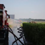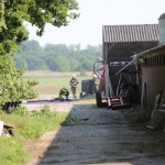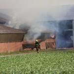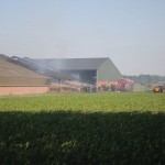 De meer dan 300 aanwezige strobalen zijn met een shovel uit de schuur gereden en daarna uit elkaar gehaald om te worden geblust.