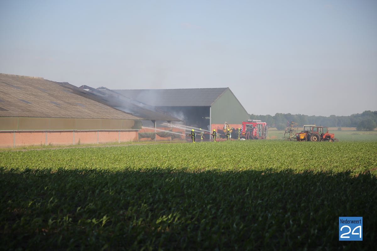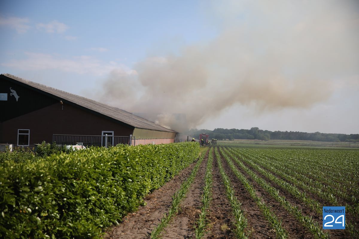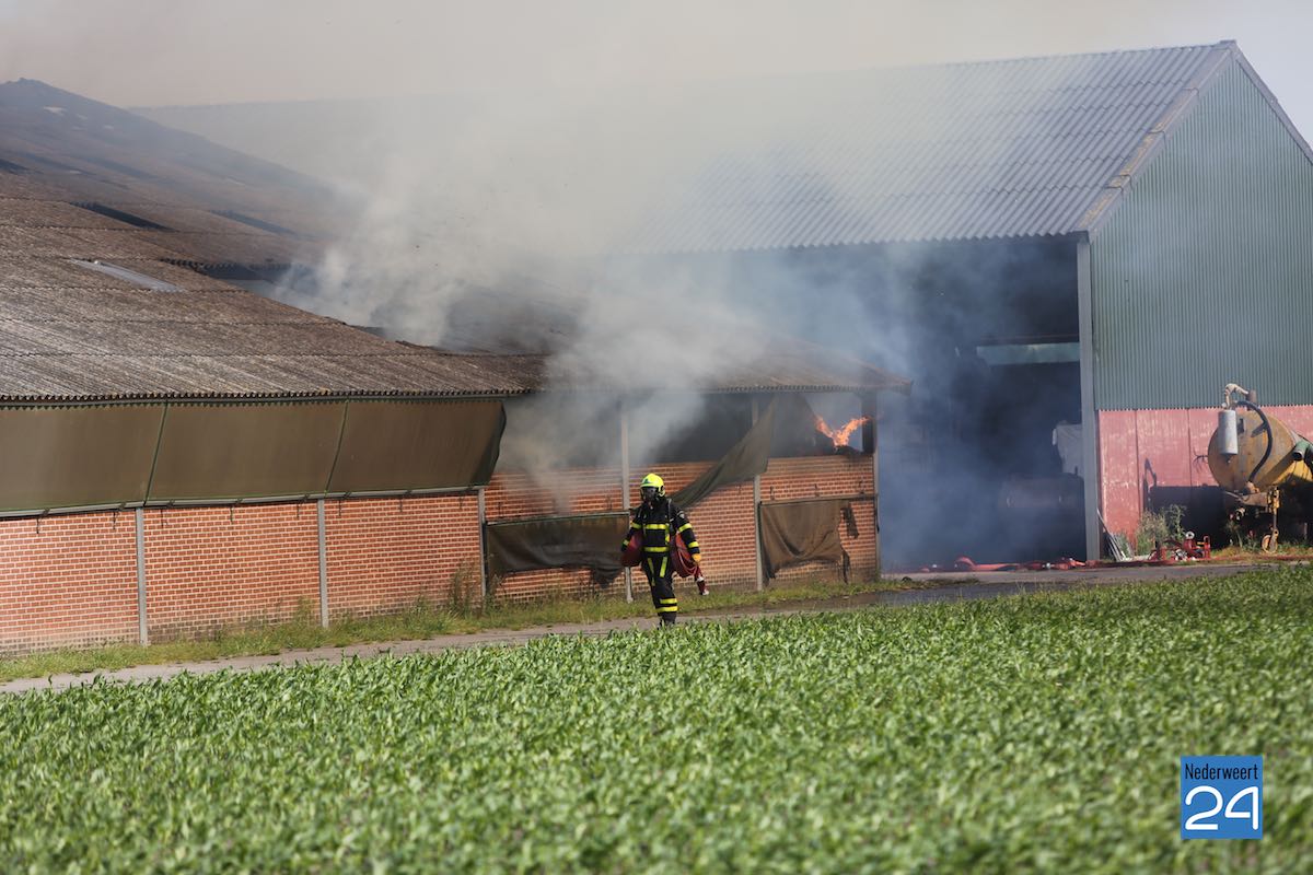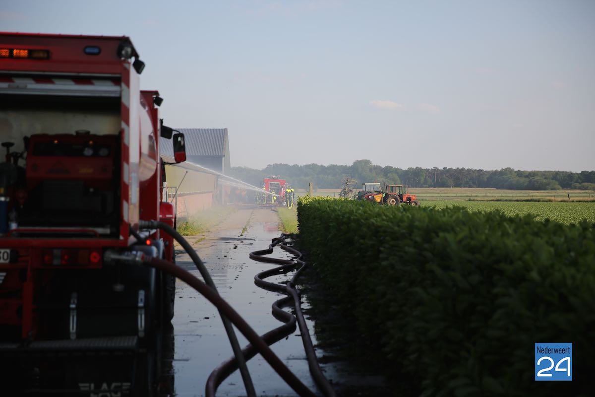 De meer dan 300 aanwezige strobalen zijn met een shovel uit de schuur gereden en daarna uit elkaar gehaald om te worden geblust.