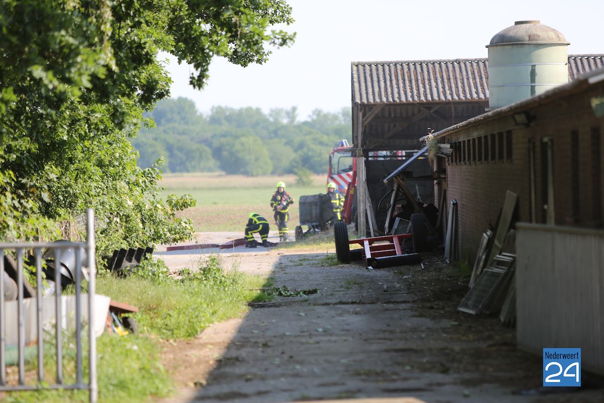 Een gedeelte van de schuur is geheel uitgebrand. Ook het dak is gedeeltelijk ingestort.