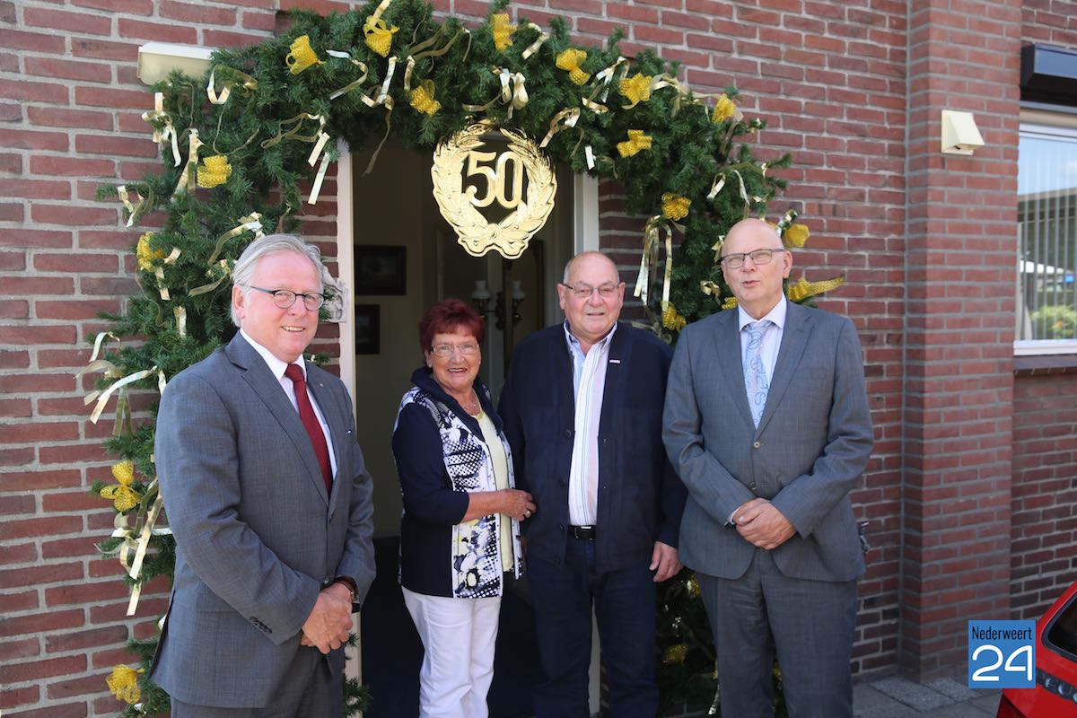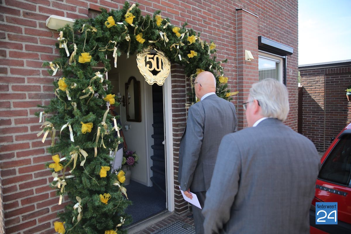 Gouden huwelijk familie Geurtjens Douven Ospel 4403Op zondag 14 juni waren Ton en Leen Geurtjens volgens de akte van de gemeente Nederweert precies 50 jaar getrouwd. Maandag brachten burgemeester Evers en wethouder Houtman een bezoek om hen te feliciteren.
