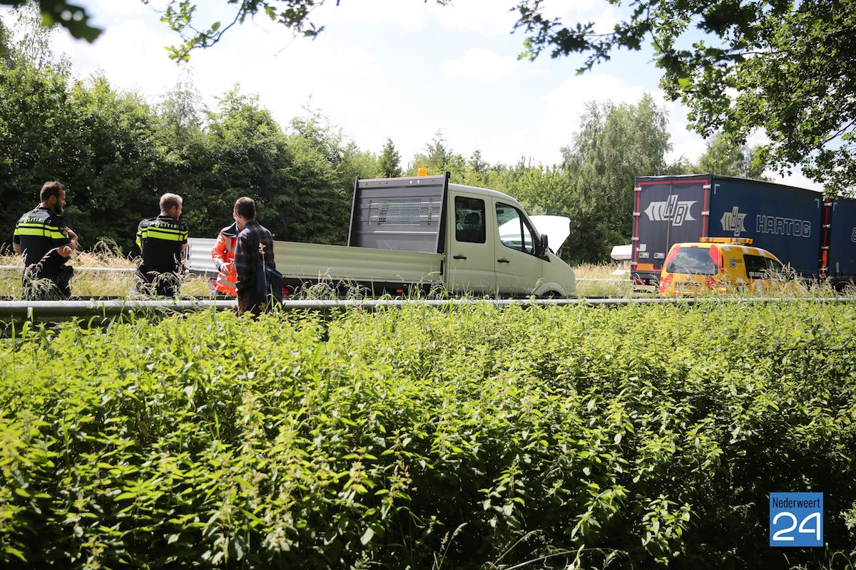 “Opeens stopte de motor ermee en begon de motor te roken“, aldus de chauffeur. Hij had de bus op de vluchtstrook gezet en was zelf aan de veilige zijde van de vangrail gaan staan. Onder het vrachtwagentje was inmiddels een flinke plas olie te zien. De brandweer heeft het voertuig gecontroleerd en uiteindelijk heeft de ANWB het vrachtwagentje naar de eerstvolgende afrit gesleept.