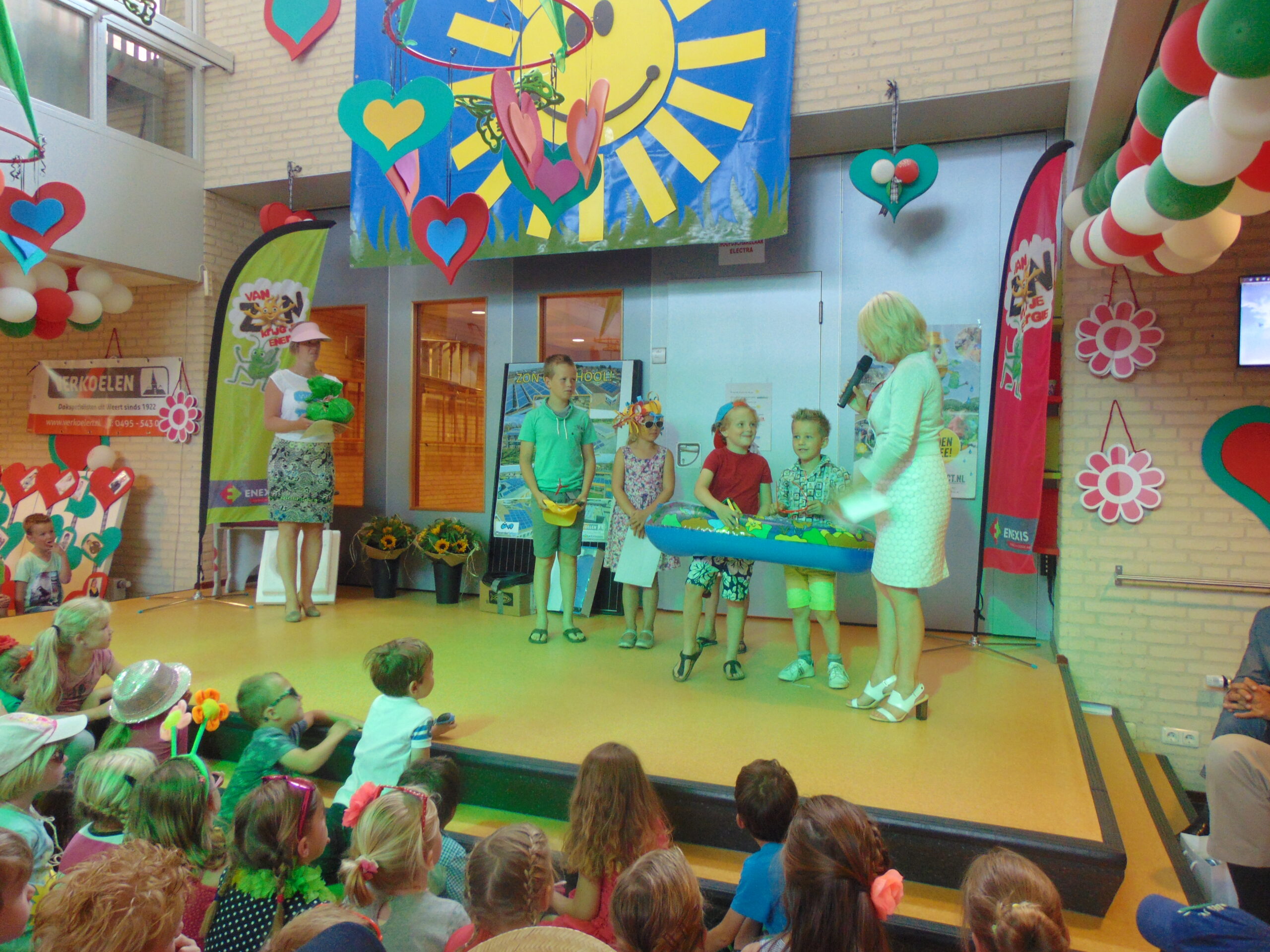 Na een kort openingswoord verzorgden de leerlingen een quiz waarbij de kennis van de aanwezige bestuurders worden getest. Ook werden de prijswinnaars van de kleurwedstrijd bekend gemaakt die in het kader van het plaatsen van de zonnepanelen is georganiseerd. Mats, Nikki, Jules, Sil en Tijn waren de Zonnestraaltjes van de dag.