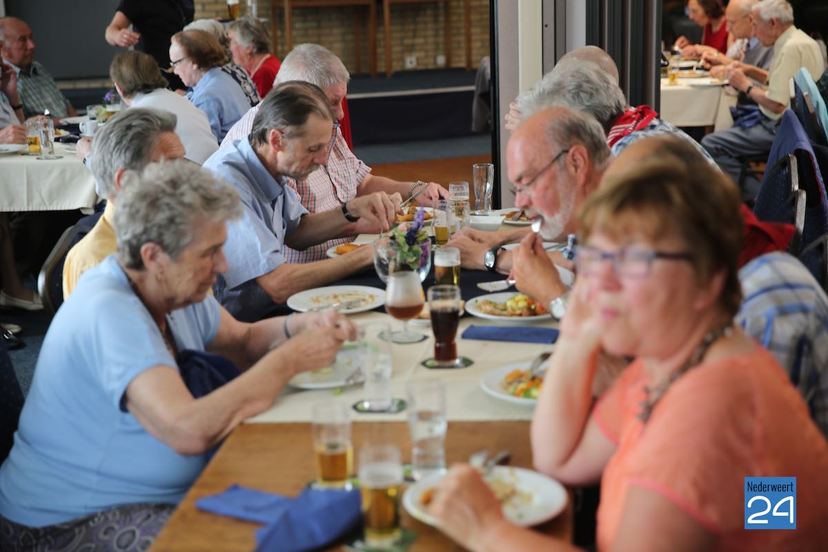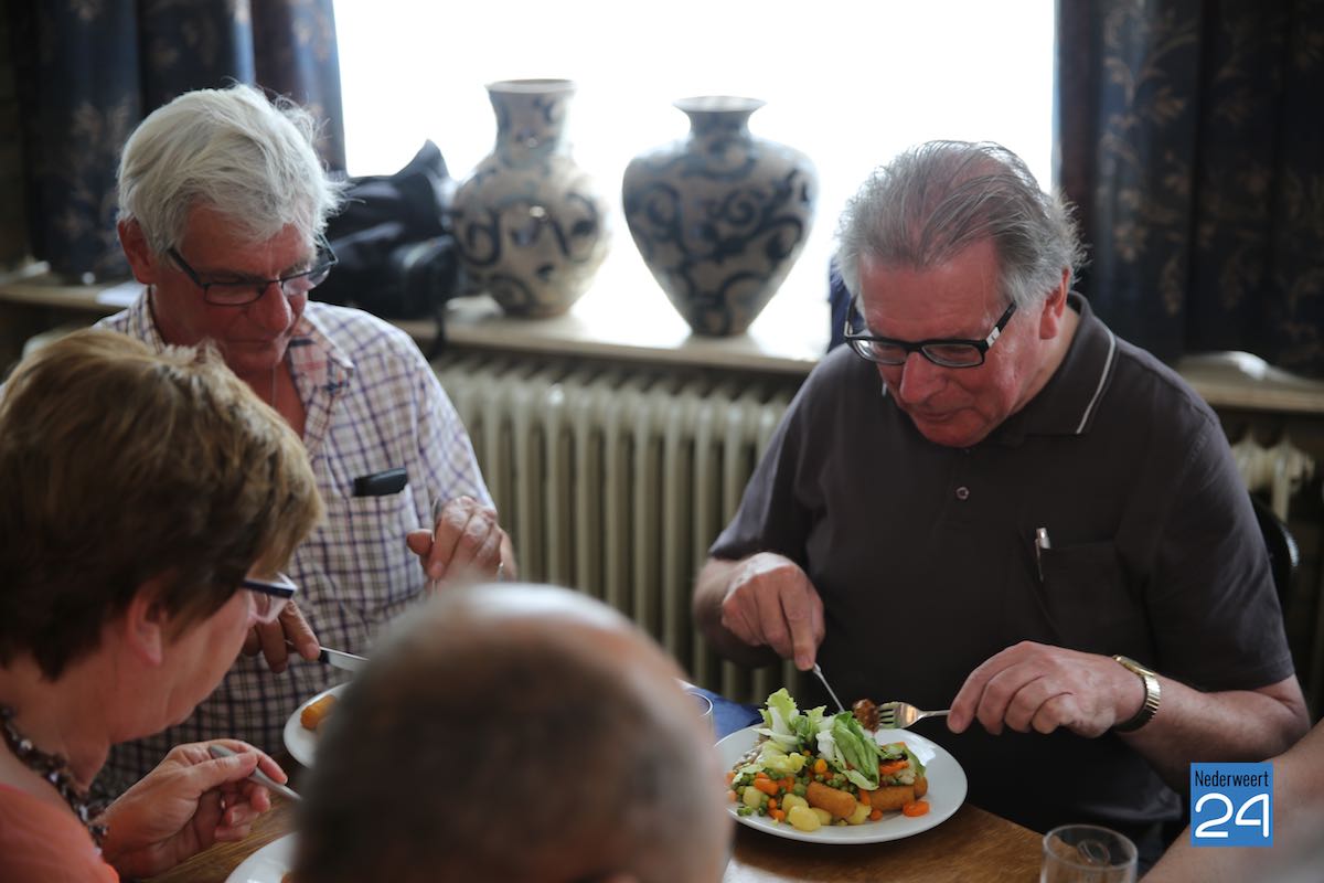 Vanmorgen waren ze begonnen met een kopje koffie of thee bij Zaal van Nieuwenhoven waarna ze door Henk Verheijen werden rondgeleid in en rond de Sint Gerarduskerk van Nederweert-Eind. Na een bezoek aan het dorpsplein kregen ze een heerlijke lunch aangeboden. Vervolgens kregen ze een rondleiding op Eynderhoof. ‘Bokrijk in het klein’, zo stond op de uitnodiging te lezen. Na een stuk echte Limburgse vlaai ging het gezelschap weer huiswaarts.