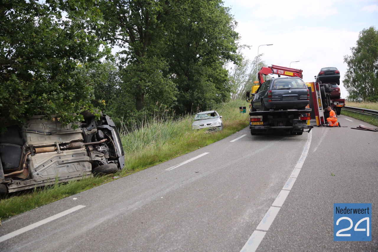 Op de Kempenweg (N564) in Weert is op donderdagochtend een aanhangwagen met sloopauto’s gekanteld. Drie auto’s zijn hierdoor op de weg en twee in het talud beland. Door het ongeluk is de weg van Weert naar Budel in beide richtingen afgesloten.