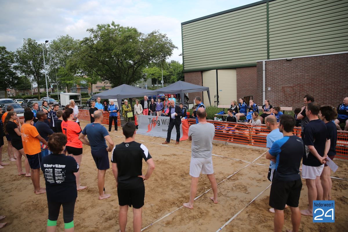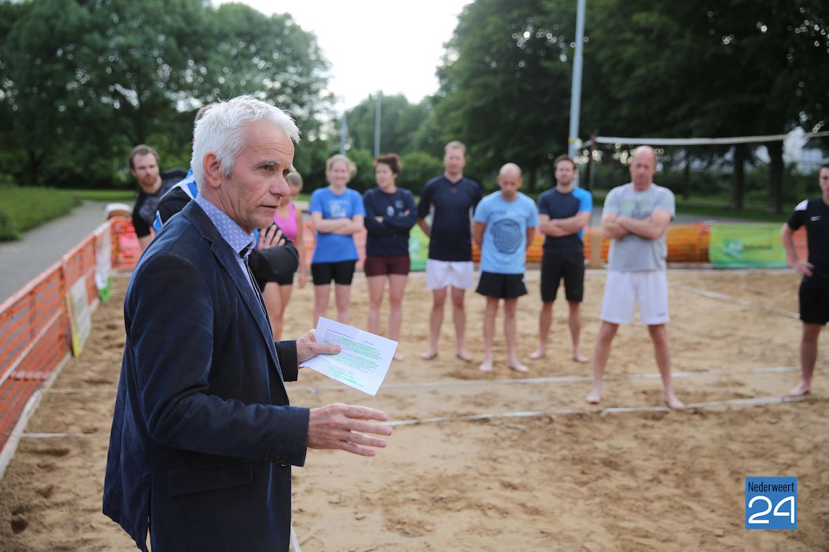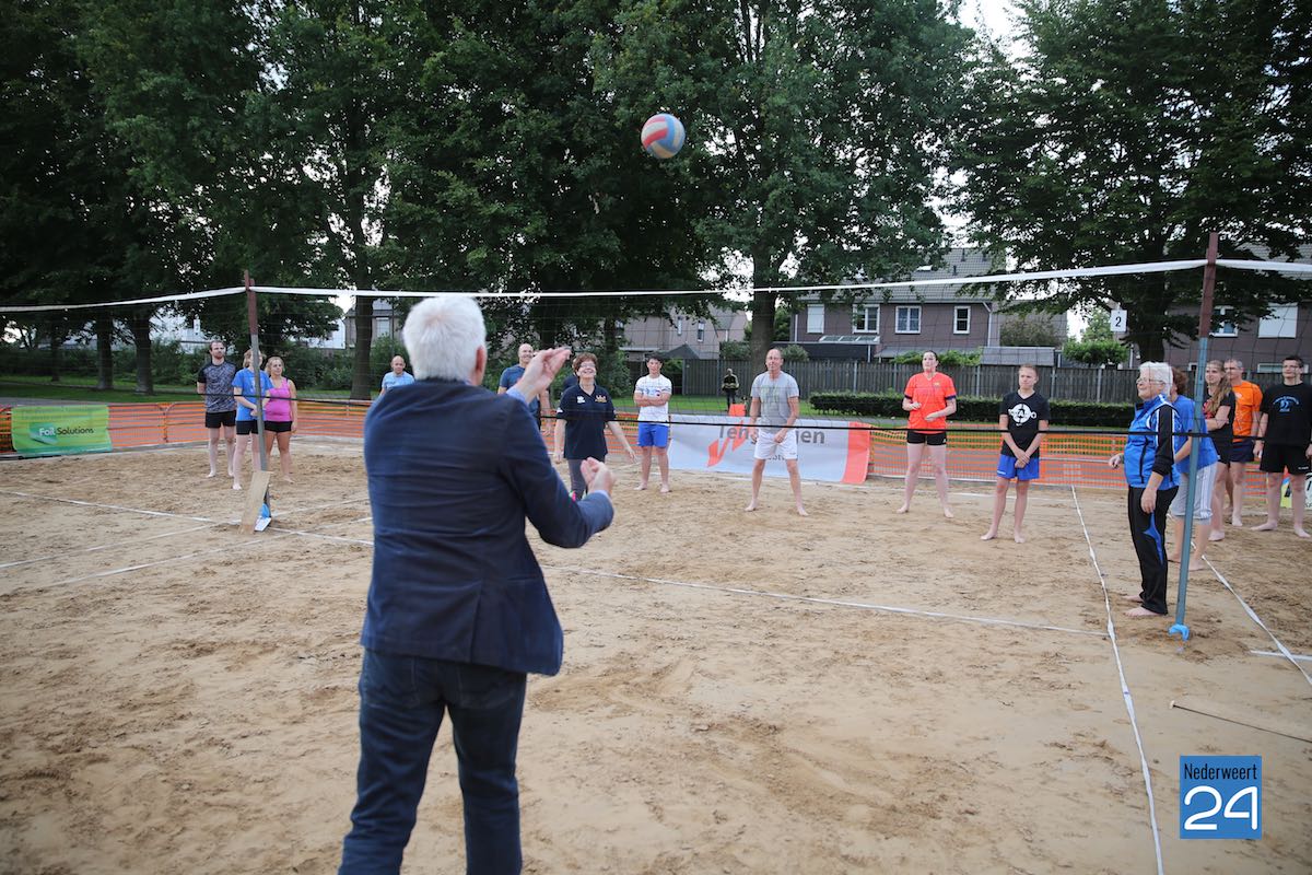 “Ik ben als wethouder trots dat de verschillende sportverenigingen dit samen organiseren”, aldus Henk Geraats. Het samenwerkingsverband de Bengele Beweegt begint zijn eerste vruchten af te werpen. Het is nog een lange weg maar de start is gemaakt, en hoe! Met een volleybal opslag opent de wethouder de eerste editie van het Beach Event Nederweert.