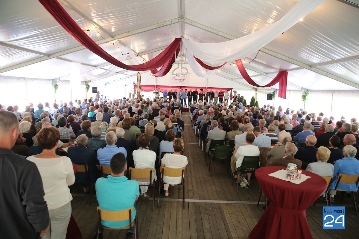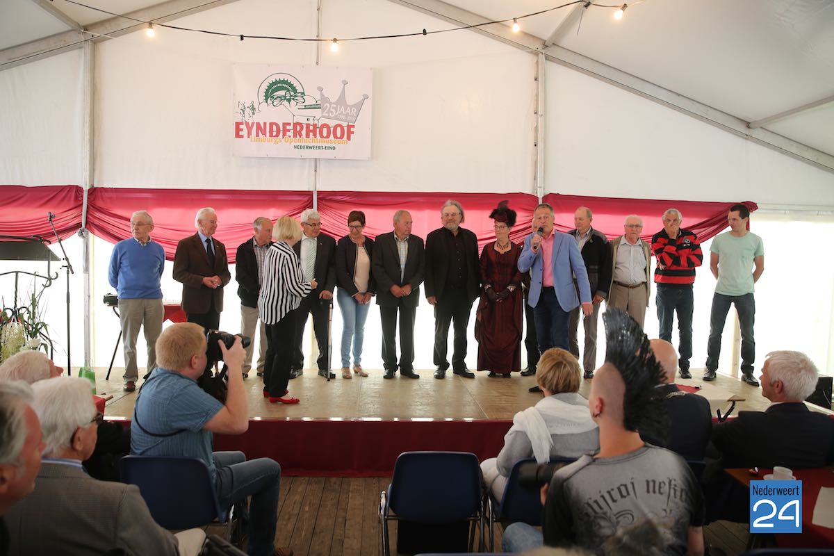 Eynderhoof bestaat 25 jaar en dit heuglijke feit hebben ze zaterdag gevierd met vrienden, vrijwilligers en de vele bestuurders die het museum een warm hart toedragen. De dag begon ’s morgens vroeg met een bijeenkomst voor alle Vrienden van Eynderhoof. Daarna begon om 11:00 uur de feestvergadering voor de genodigden. In een prachtig versierde tent kwamen ruim 580 vrijwilligers met aanhang, vrienden, kennissen en andere genodigden samen.