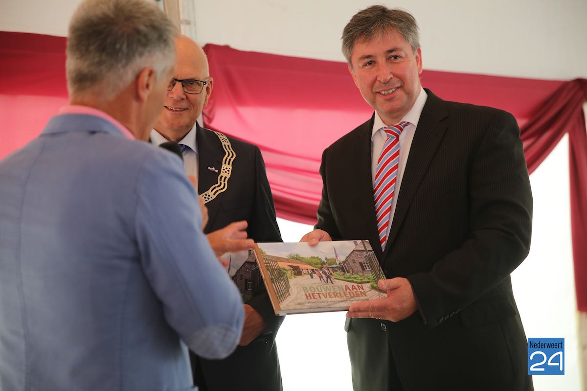 Na de jubilarissen werd het foto jubileumboek 25 jaar Eynderhoof uitgereikt aan gedeputeerde Patrick van der Broeck en burgemeester Evers van Nederweert. Vrijwilligers zijn de fundamenten van het openluchtmuseum maar zonder het cement van de bestuurders zou Eynderhoof niet zijn wat het nu is. “Namens alle vrijwilligers en betrokkenen van Eynderhoof dank ik ‘jullie bestuurders’ en daar mee de hele gemeenschap“, aldus Peter Willekens.