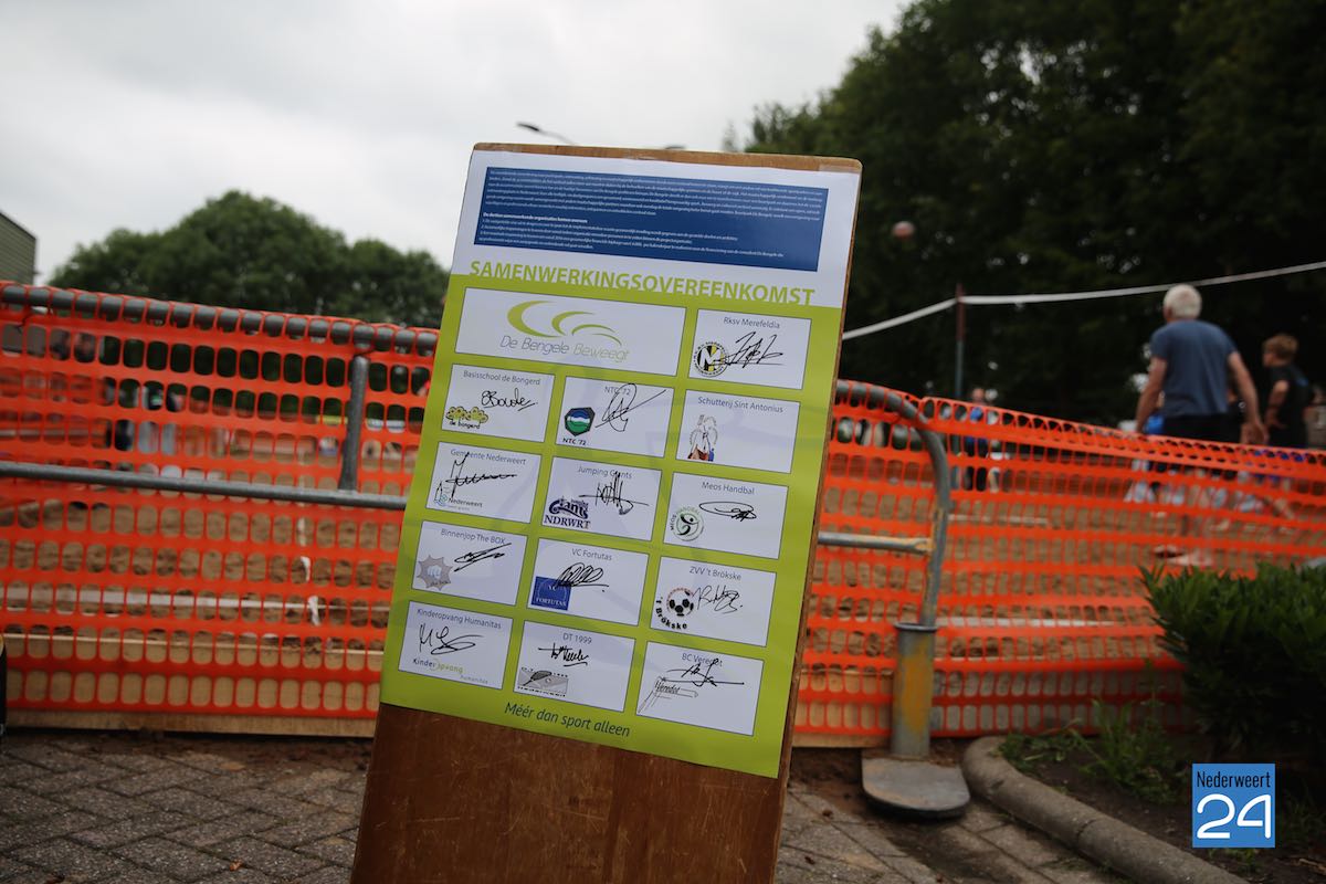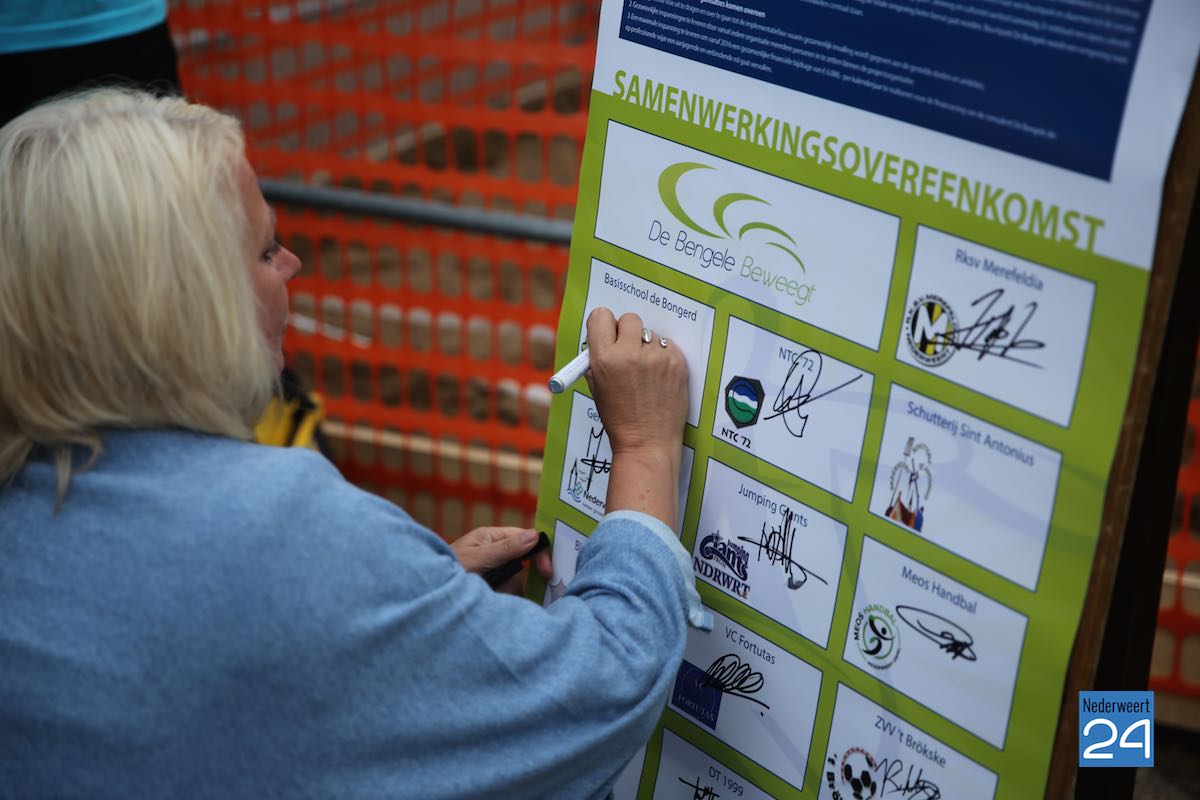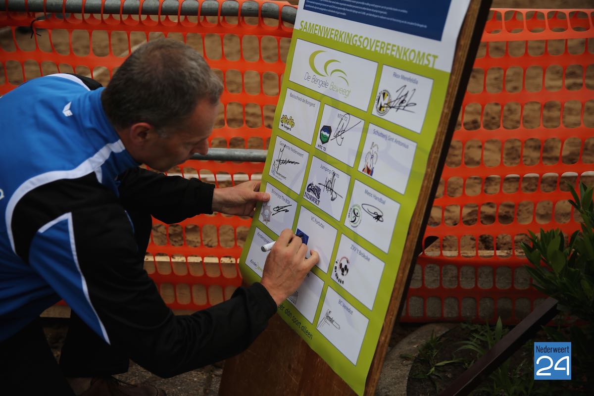 Dinsdagavond hebben 13 partijen de overeenkomst getekend voor het nieuwe samenwerkingsverband ‘De Bengele Beweegt’. “Hiermee verbinden de partijen zich met elkaar en is er weer een belangrijke stap gezet om te komen tot een sportieve, culturele en sociale ontmoetingsplaats in Nederweert”, aldus Roy Simons, begeleider van het project namens de gemeente.