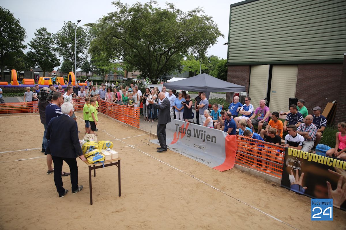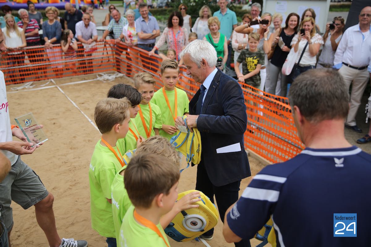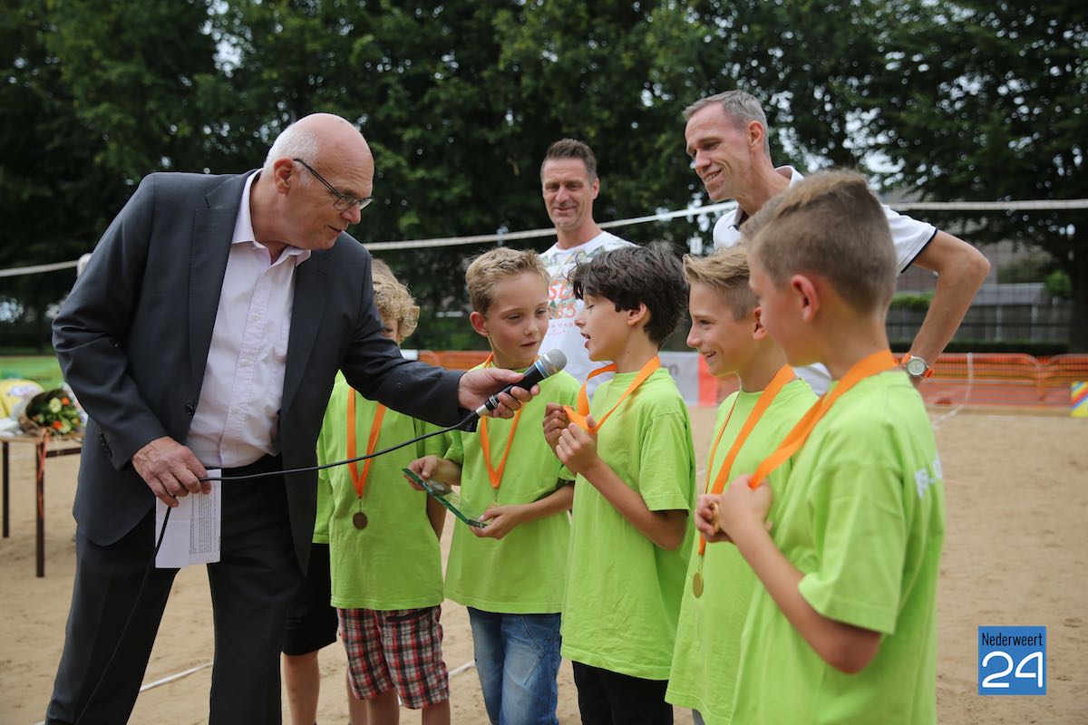 Niek Creemers, voorzitter van Volleybal Club Fortutas, feliciteerde de spelers met hun behaalde resultaat en bood ze een klein presentje aan. Tot slot werd nog een mooie teamfoto gemaakt én eentje waarbij de burgemeester en wethouder zich aansloten.