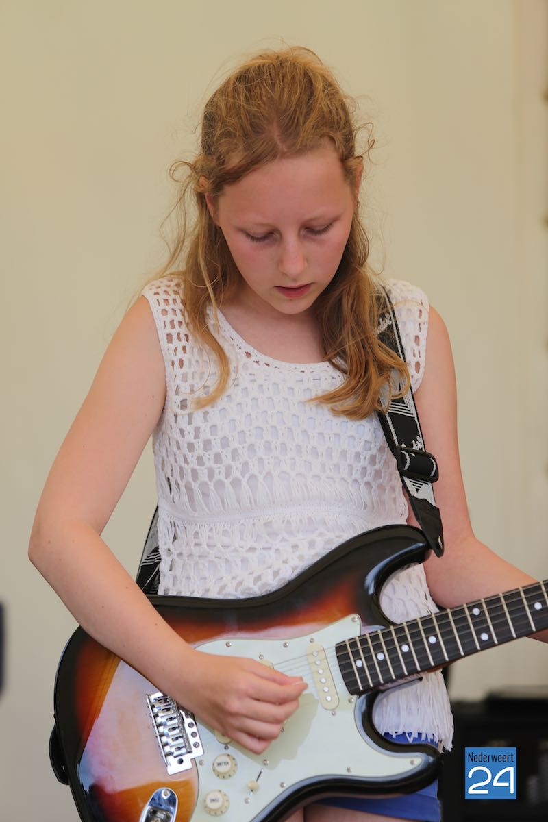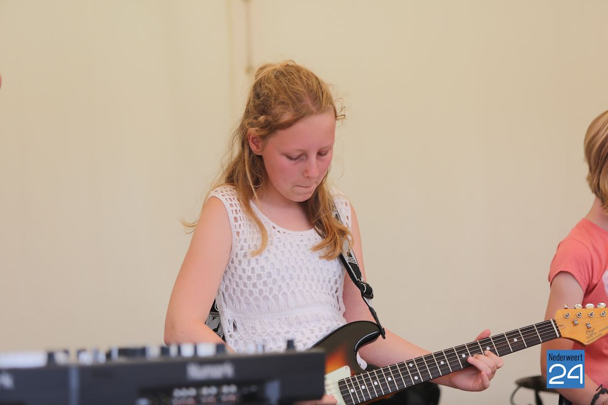 De middag begon met een spectaculaire opening van het “In de Bandproject” van kinderen van groep 7/8 van de basisscholen in Nederweert. Onder begeleiding van docenten van Rick’s Rockplein hadden de kinderen een popsong ingestudeerd die ze lieten horen. Vanaf 14.00 uur was het tijd voor de bands van Rick’s Rockplein. In een zonovergoten sfeer en met super veel belangstelling van ouders, vrienden en bekenden was het goed toeven in Ospel.