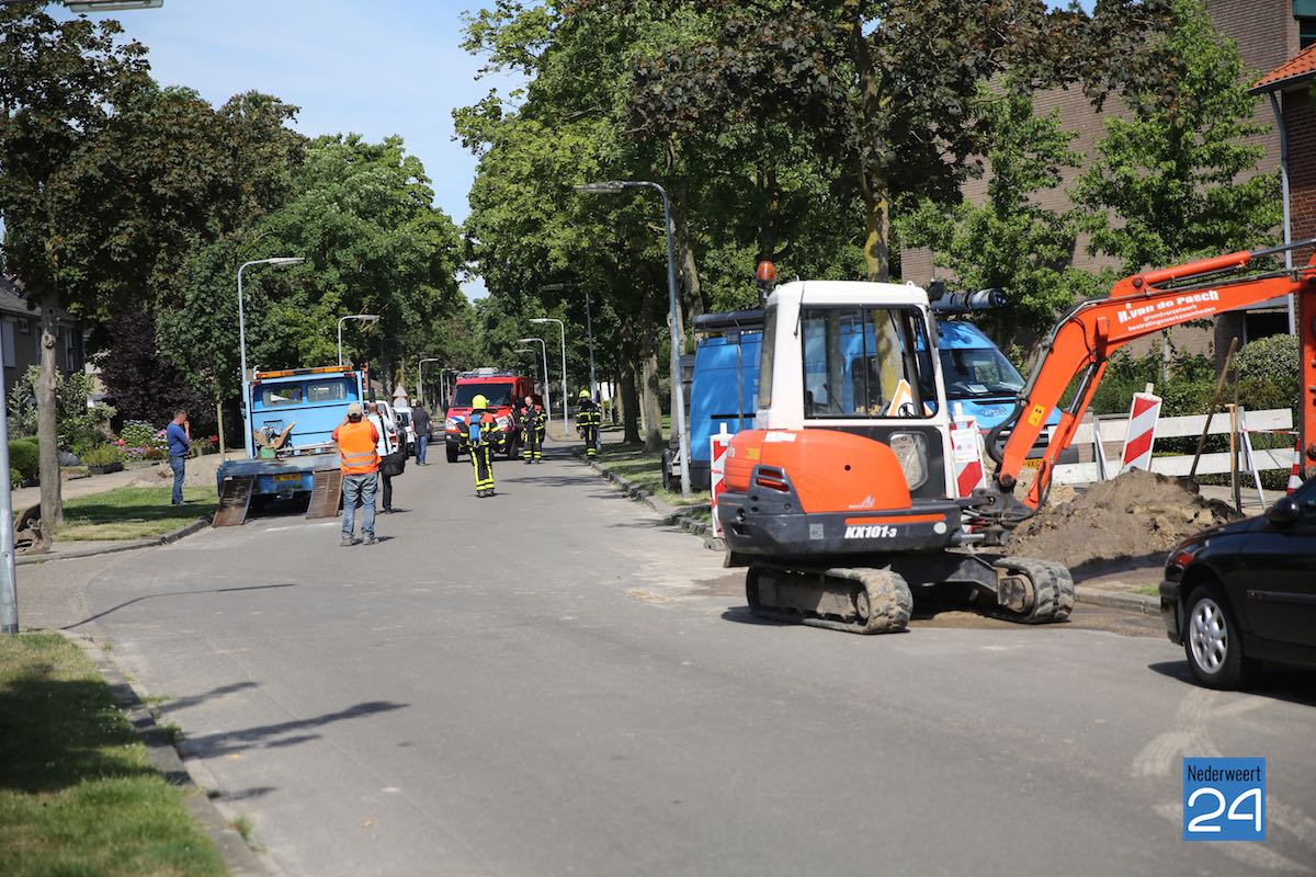 Tijdens graafwerkzaamheden met een minigraver voor de reparatie van de waterleiding werd de gasleiding geraakt. Buurtbewoners zijn door de brandweer gewaarschuwd en gevraagd deuren en ramen gesloten te houden. De weg is voorlopig afgesloten voor verkeer. De netbeheerder is bezig met de reparatie van de leiding.
