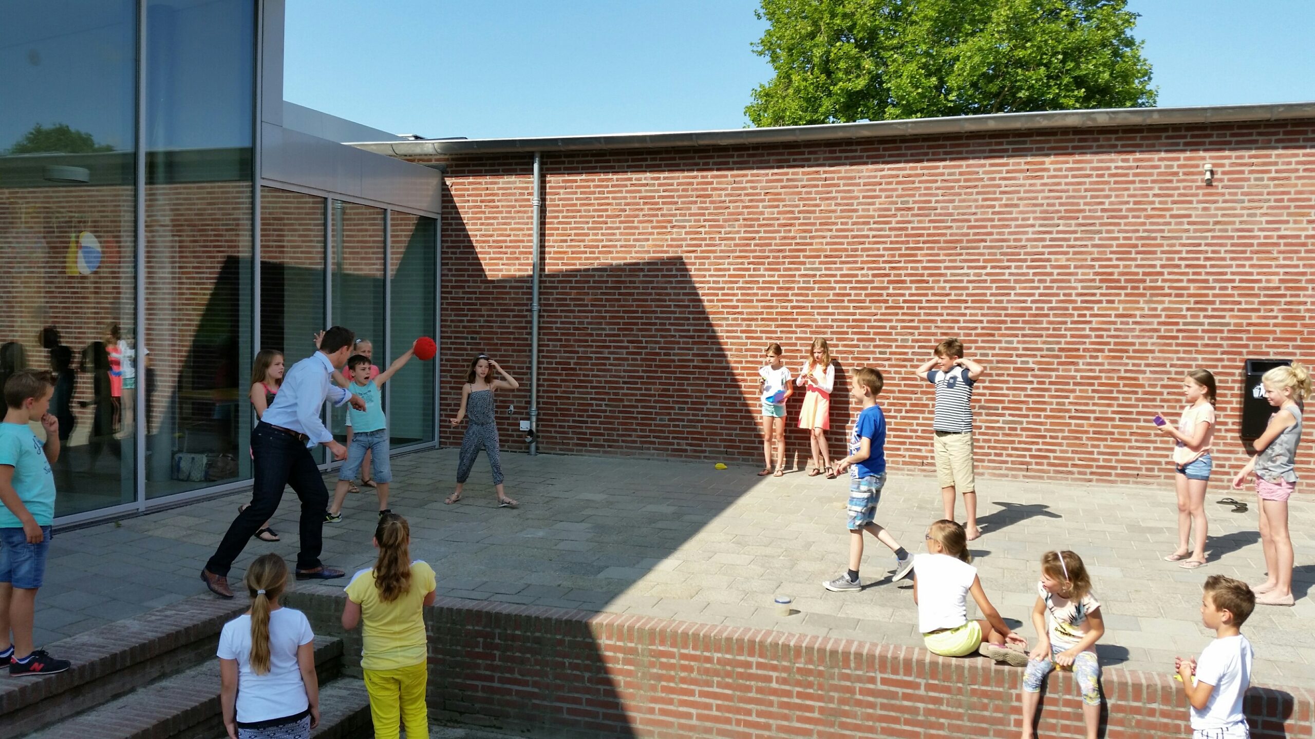 Dat bleek ook toen de jongens van groep 8 vroegen of hij met hun mee wou gaan voetballen in de pauze, natuurlijk wou hij dat (al had hij zijn goede schoenen aan). En goed voorbeeld doet volgen dus de trefballers roken hun kans en lieten hem ook nog een balletje gooien. Al met al een geweldige dag in Den Haag, met een mooie afsluiter vandaag in D’Indj.