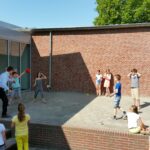 Dat bleek ook toen de jongens van groep 8 vroegen of hij met hun mee wou gaan voetballen in de pauze, natuurlijk wou hij dat (al had hij zijn goede schoenen aan). En goed voorbeeld doet volgen dus de trefballers roken hun kans en lieten hem ook nog een balletje gooien. Al met al een geweldige dag in Den Haag, met een mooie afsluiter vandaag in D’Indj.
