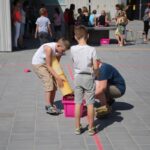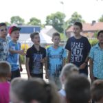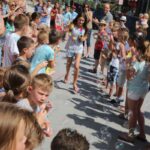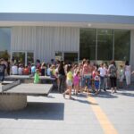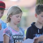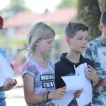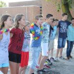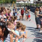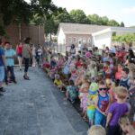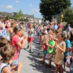 Na de speeches was het tijd voor groep 8. Met een lach en een traan werd een prachtig afscheidslied gezongen. Daarna hadden de leerlingen een verrassing voor alle leraren. Ze hadden een doos met een bom. Onder tijdsdruk moesten de leraren allerlei vragen beantwoorden totdat de bom zou afgaan. De tijdsdruk maakt het beantwoorden van de vragen nog best lastig. Als afsluiter werden de leerlingen van groep 8 door een lange erehaag van bellenblazers de school uit geblazen. Op naar een nieuwe toekomst!