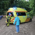 De traumahelikopter werd gecanceld. De brandweer heeft het slot van een poort geforceerd zodat de ambulance het bosgebied via een verharde weg heeft kunnen verlaten.