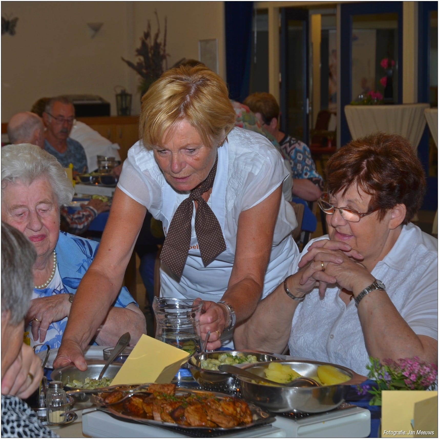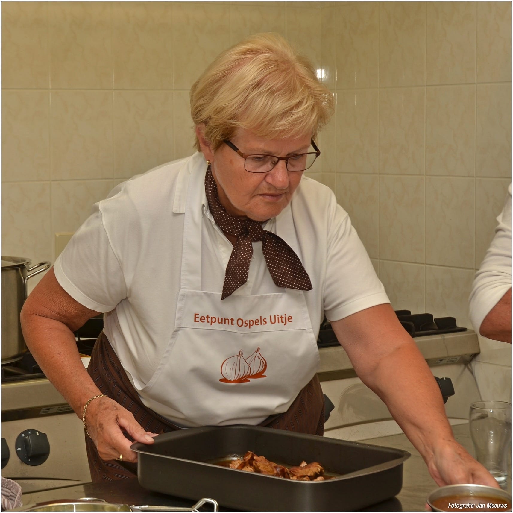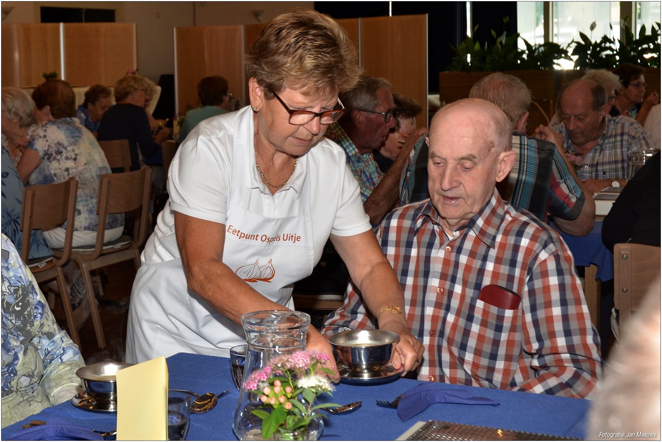 Het ‘Eetpunt Ospels Uitje’ bestaat vier jaar. Om deze ‘mijlpaal’ te vieren werd er een extra feestelijke Open Eettafel gehouden. Wethouder Henk Geraats, beleidsmedewerker Karin van Diessen en regisseur sociaal domein Harold van der Haar hielpen een handje mee in de bediening en namen een kijkje in de keuken.