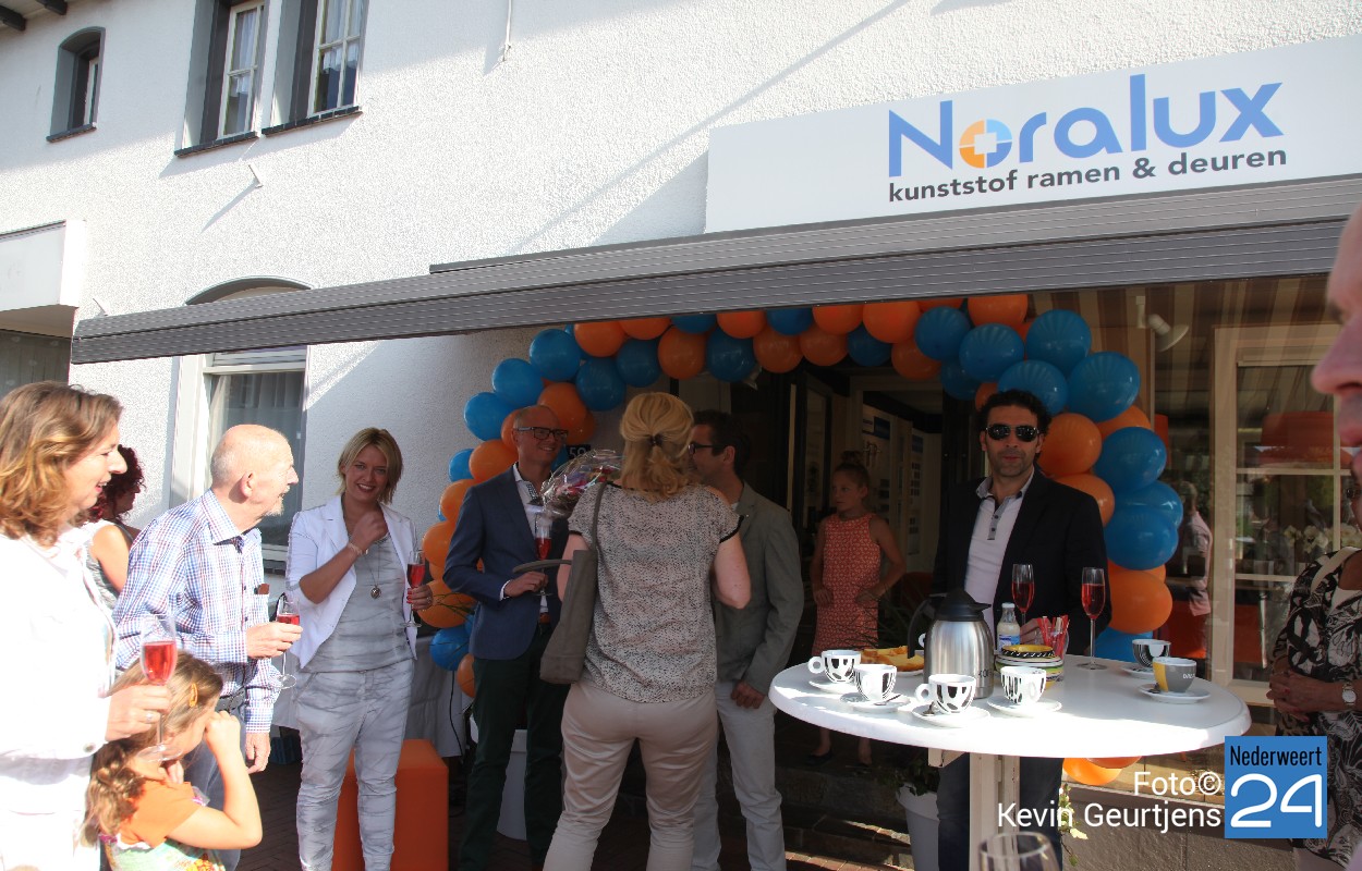 NoraluxHubert Mackus opende zaterdagochtend de nieuwe showroom van Noralux ramen en deuren in de Brugstraat. Verschillende mensen kwamen een kijkje nemen in de nieuwe showroom en testruimte.