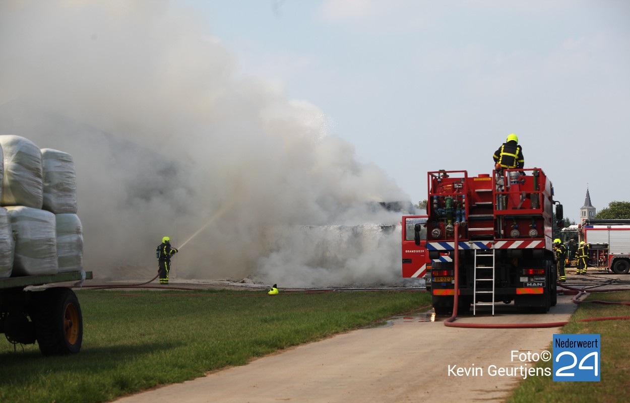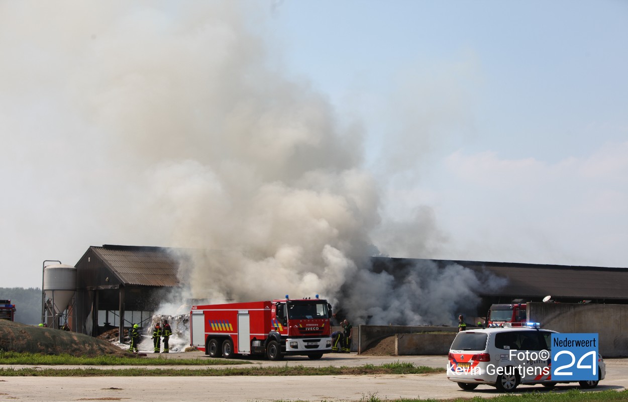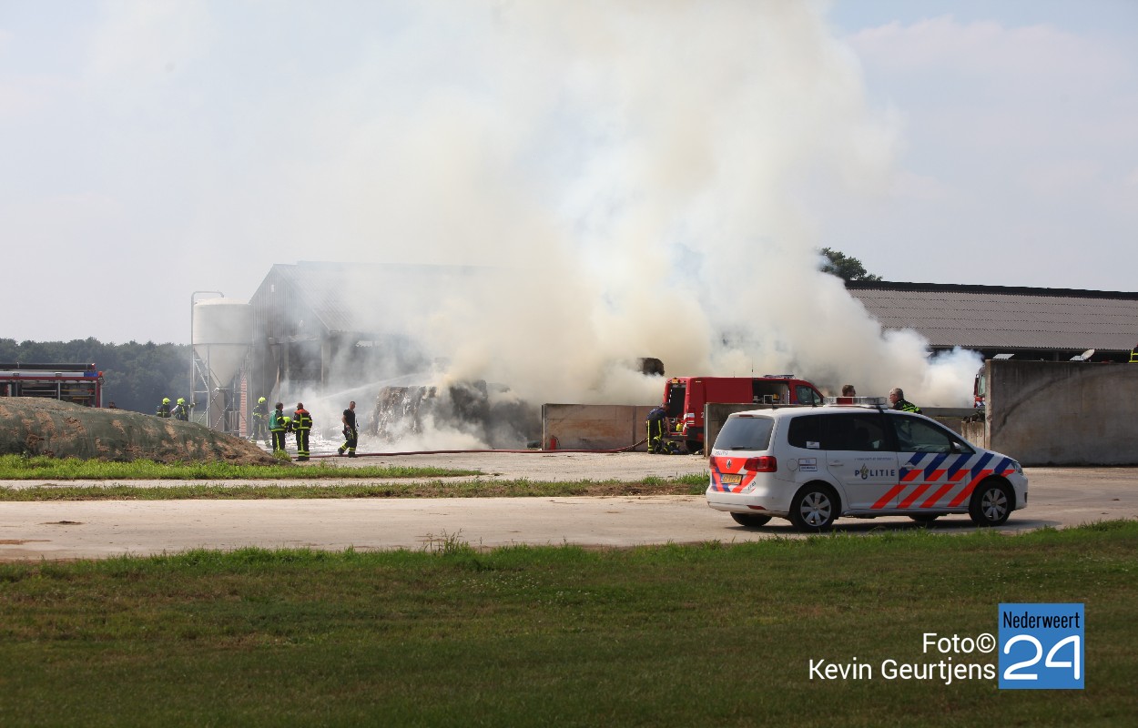 De brandweer is vrijdagmiddag opgeroepen voor een grote brand op de Kallestraat in Hunsel. In eerste instantie werd gedacht dat een schuur met hooi in brand stond, dit bleek achteraf niet het geval. Een hooiberg nabij een schuur stond in lichterlaaie.