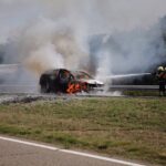 De bestuurder reed op de snelweg toen zijn auto opeens vlam vatte. De man heeft de auto op de vluchtstrook stilgezet en vervolgens de caravan losgekoppelt. De brandweer heeft de auto geblust, maar heeft niet kunnen voorkomen dat de auto volledig uitbrandde.
