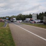 Door het ongeval is de rechter rijstrook richting het zuiden afgesloten en is er een file ontstaan.