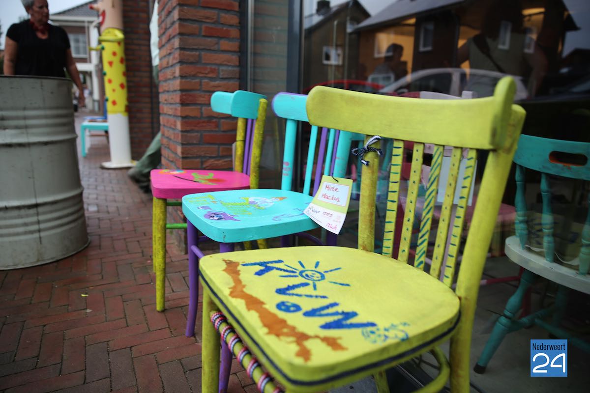 In aanloop naar deze opening hebben de kinderen van KVW Nederweert maandag op kunstzinnige wijze stoelen geverfd. De stoelen zijn te zien in de straten van Nederweert en leiden je naar deze nieuwe expositie.