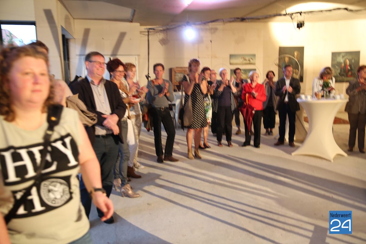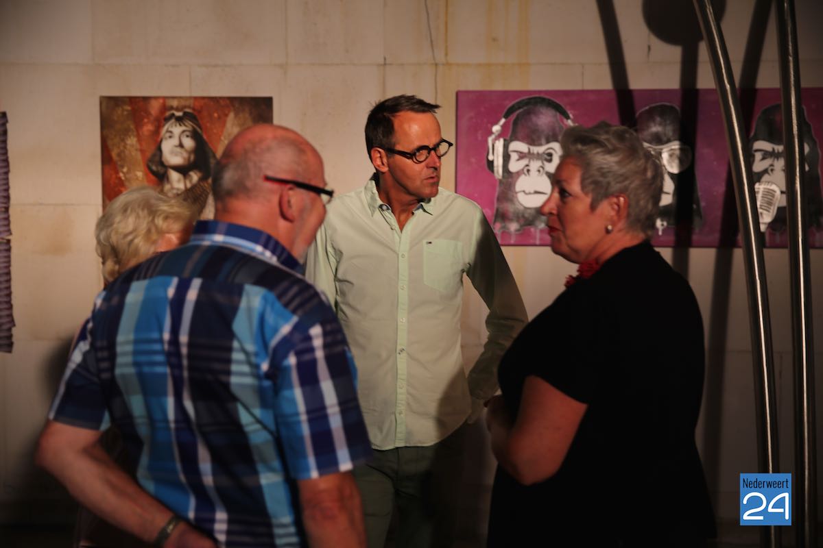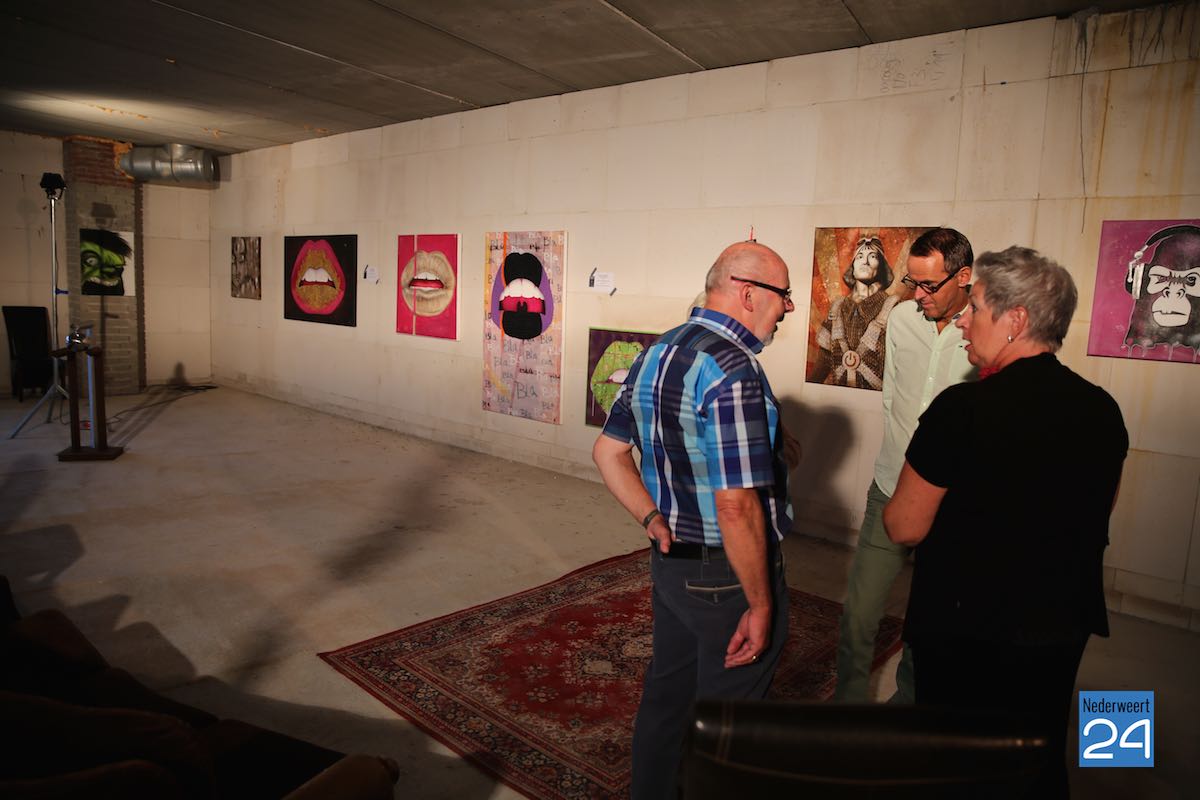 Donderdagavond is onder muzikale geleiding van Roy en Bas Kessels en een glaasje drinken de eerste Pop Up Galerie Nederweert (PUGN) op feestelijke wijze geopend. Met een paar verfstreken en strepen vormde de burgemeester het woord “PUGN” op het witte doek waarmee de expositie officieel was geopend.