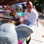 Speciaal voor de opening mochten de kinderen van Kindervakantiewerk Nederweert een half uur lang “gratis” in de attracties op het Raadhuisplein. Nee…. niet de snoepkraam, maar wel alle draaiende en bewegende attracties. Hier werd gretig gebruik van gemaakt door de kinderen die zo te zien nog energie genoeg overhadden na de Wandelvierdaagse.