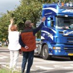 Veel belangstellenden stonden langs de route om te zwaaien naar de trucks en bijrijders. Een video vanuit een truck geeft een mooi beeld van wat de bijrijders beleven.