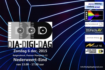 Zondag 6 december wordt weer de jaarlijkse DiaDigiDag in gemeenschapshuis De Reigershorst in Nederweert-Eind gehouden. Liefhebbers van fotografie en geluid uit Limburg komen dan hier bijeen om hun presentaties van beeld en geluid te laten zien.