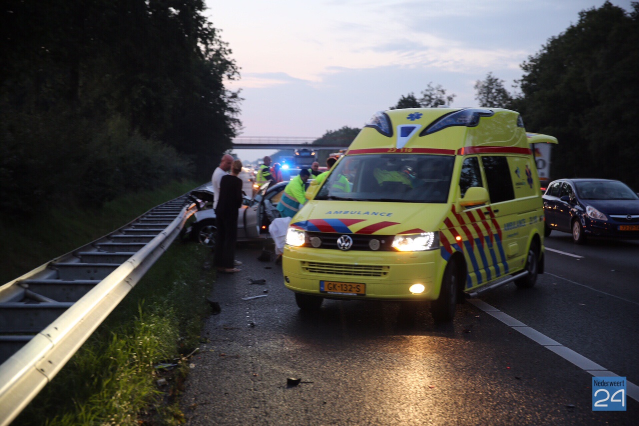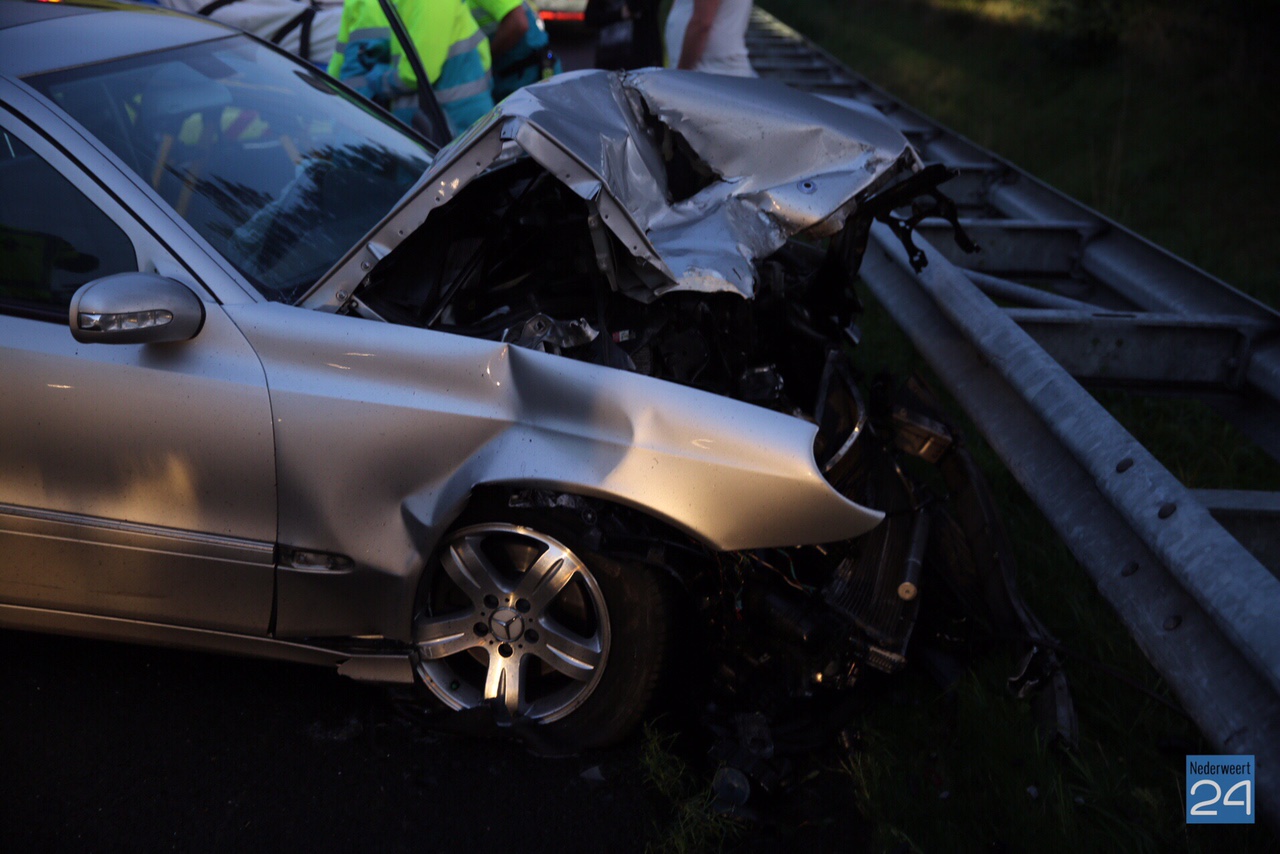 Op de snelweg richting Maastricht is door het ongeval een flinke file ontstaan. Een rijstrook is maar open.