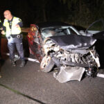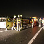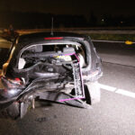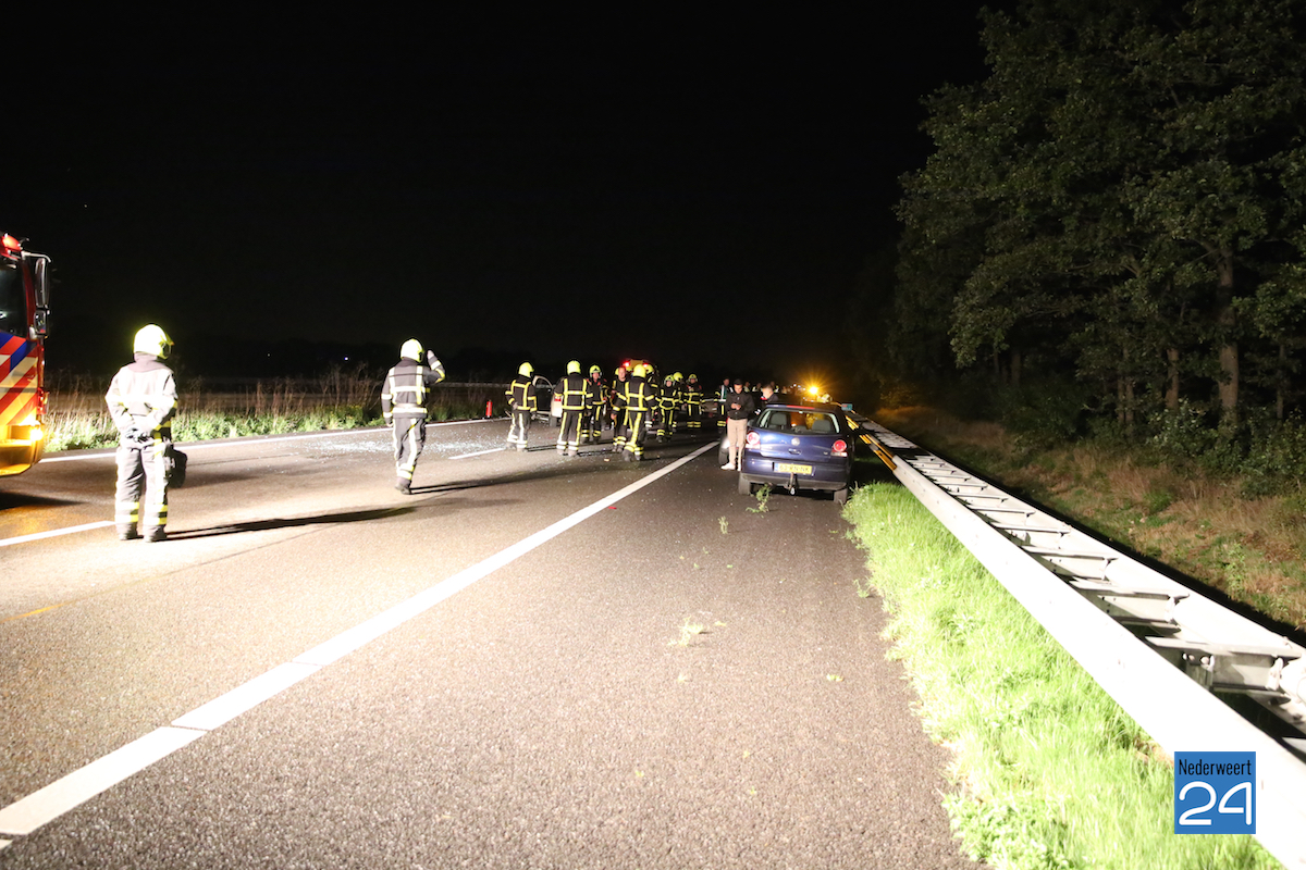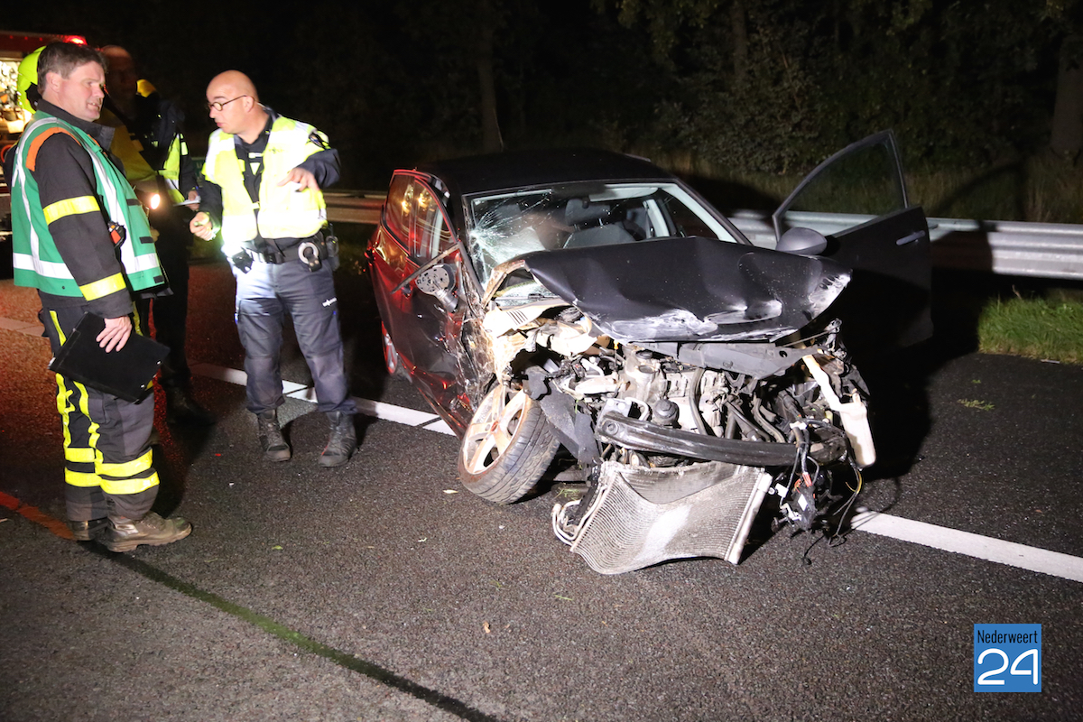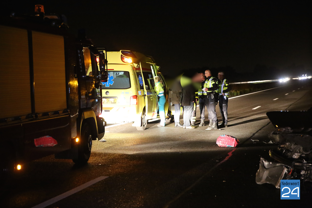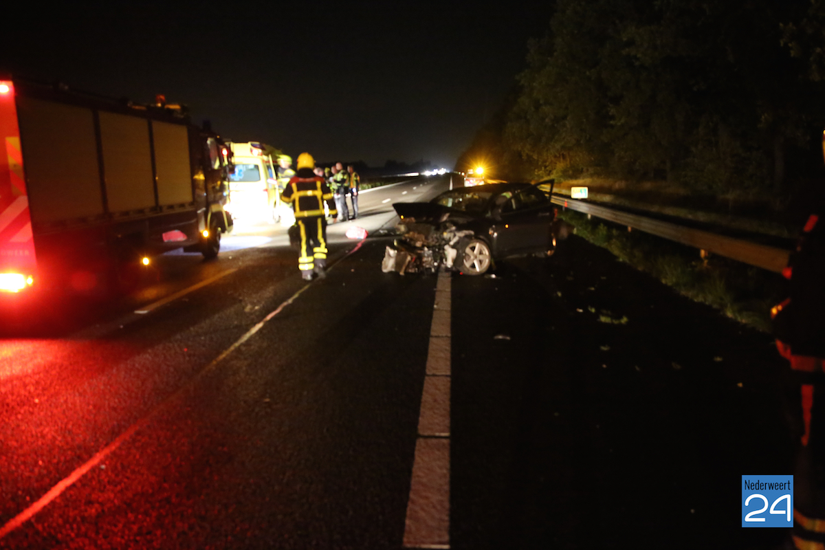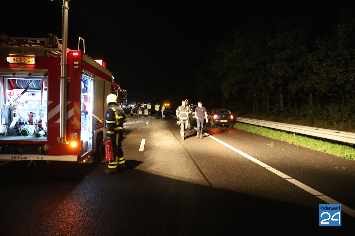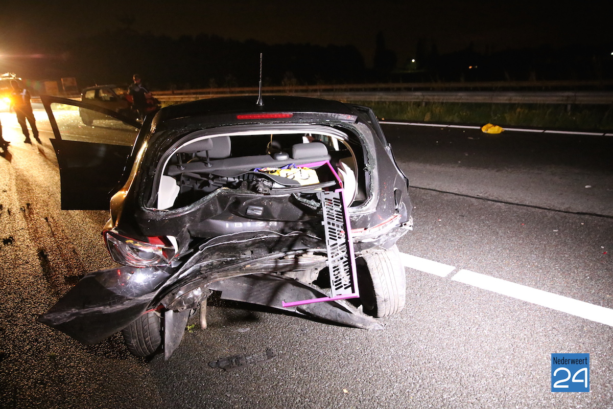 Een auto heeft een klapband gekregen en is daarna in de middenberm tegen de vangrail stil komen te staan. De bestuurster van die auto is daarna veilig achter de vangrail gaan staan. De twee auto’s hebben de stilstaande auto niet opgemerkt en zijn er bovenop geknald. Van de auto’s is niet veel meer over. Drie ambulances zijn ter plaatse en hebben de inzittenden van de auto’s die achterop reden onderzocht. “Ik heb echt een engeltje op mijn schouder gehad. Ik ben zo blij dat ik snel uit mijn auto ben gestapt” aldus de bestuurster van de auto met de klapband.