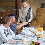 Lunch tussen de Koeien 6200 (1)Toos Stultiëns uit Nederweert en Nicole Jans uit Ospel hebben zondagmiddag geluncht tussen de koeien op het bedrijf van melkveehoudster Gerie Pouwels uit Weert.  Ze waren ieder samen met een introducé te gast bij Gerie omdat ze een prijs hadden gewonen tijdens de LIKE & WIN actie van de LLTB-afdeling Weerterland. Een interessante ontdekkingstocht door het Weerterbos met aansluitend een lunch aan een prachtig gedekte tafel bij de familie Pouwles.