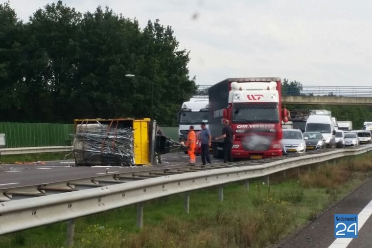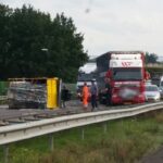 De weg is volledig versperd. Zover bekend raakte niemand gewond. Het zal enige tijd nodig hebben voordat de rijbaan weer vrijgegeven kan worden. In beide richting staat inmiddels een lange file.
