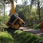 Kiggen vrachtwagen in sloot Gebleektedijk 6286Vrijdagmiddag is de gekantelde vrachtwagen aan de Gebleektendijk in Nederweert-Eind weer met alle wielen terug op het wegdek gezet. Een paar grote kranen waren nodig om het gevaarte weer gecontroleerd rechtop te zetten.