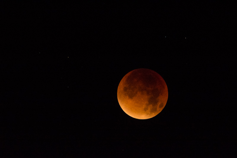 Precies om 4:48 uur was de verduistering maximaal en stond de aarde precies tussen de zon en de maan in en ook nog eens 7% dichterbij dan normaal. De rode gloed ontstaat door de lichtbreking in de atmosfeer. De “supermaan” komt voor als de maan op haar dichtst mogelijke positie bij de aarde vandaan staat. Een supermaan in combinatie met een maansverduistering is zeldzaam. De volgende keer dat dat gebeurt is in 2033.