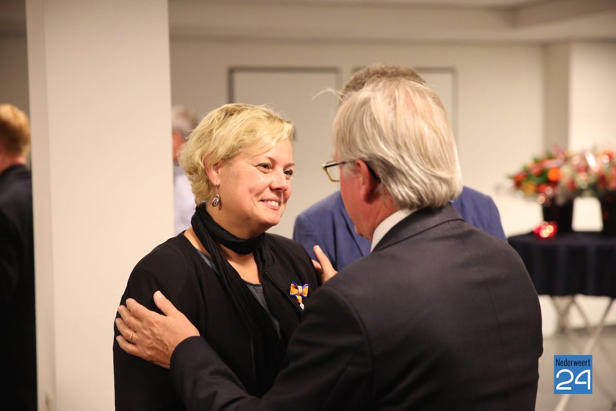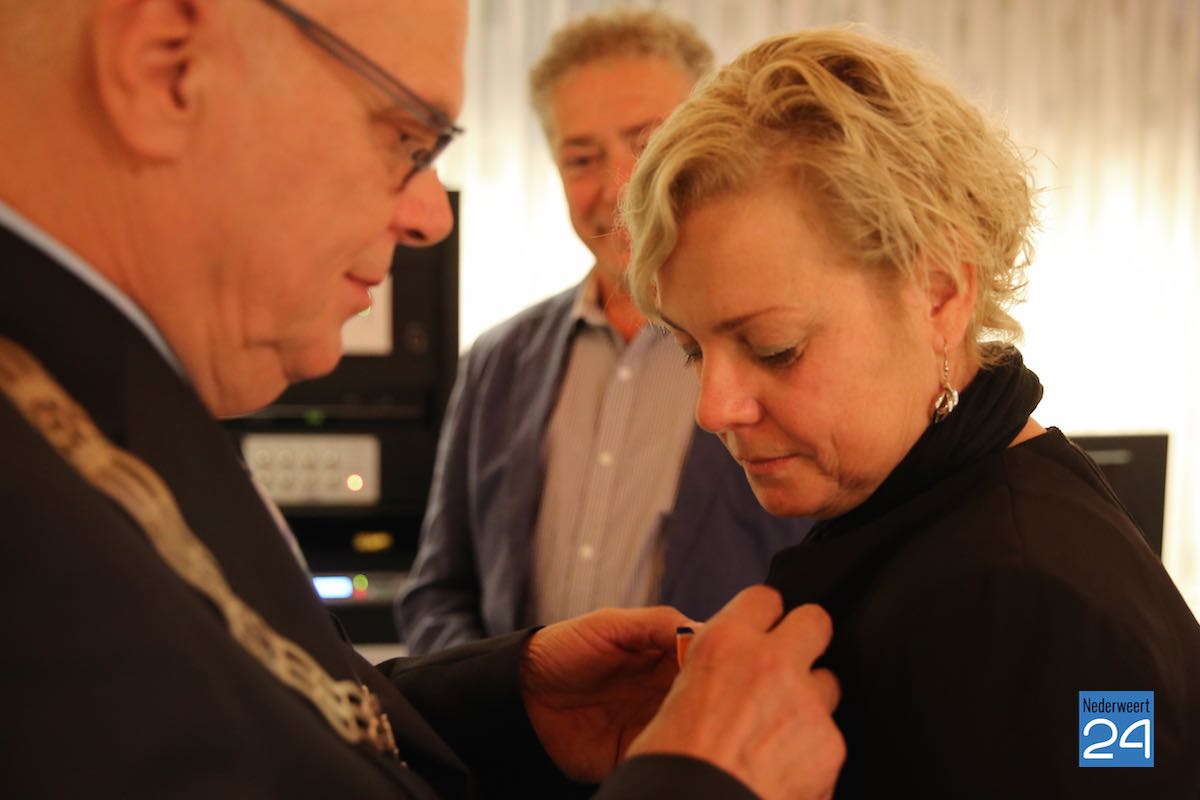 Carla Dieteren (50) uit Nederweert-Eind heeft dinsdagavond de versierselen behorende bij de benoeming tot Lid in de Orde van Oranje-Nassau ontvangen uit handen van burgemeester Evers van Nederweert. De uitreiking vond plaats tijdens haar laatste gemeenteraadsvergadering van Nederweert waarin het afscheid heeft plaatsgevonden.