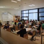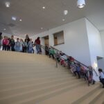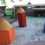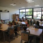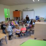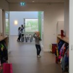 Nadat ze hun eigen plekje gevonden hadden, gingen de juffen met de kids op pad om de school te verkennen. Vooral voor de allerkleinsten was het bij de allergrootste trap in de school goed opletten. Buiten is een gedeelte van de speelplaats klaar en daar staat voor velen een vertrouwd plekje, het oude speeltoestel maar nu met zacht zand eronder.