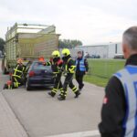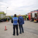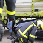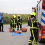 Het scenario in Nederweert speelde zich af aan de Gebbelsweg in Ospel. Hier was een auto achter onder een opraapwagen gereden. De brandweer werd opgeroepen voor een ongeval met beknelling. Eén persoon zat nog vast in de auto. Een klus die de brandweer met de nodige voorzichtigheid moet uitvoeren. Met behulp van dommekrachten (= een soort van krik) werd de machine opgetild waarna met behulp van de staaldraadtakel de auto achteruit gesleept kon worden. Vervolgens kon de brandweer het slachtoffer uit de auto bevrijden.