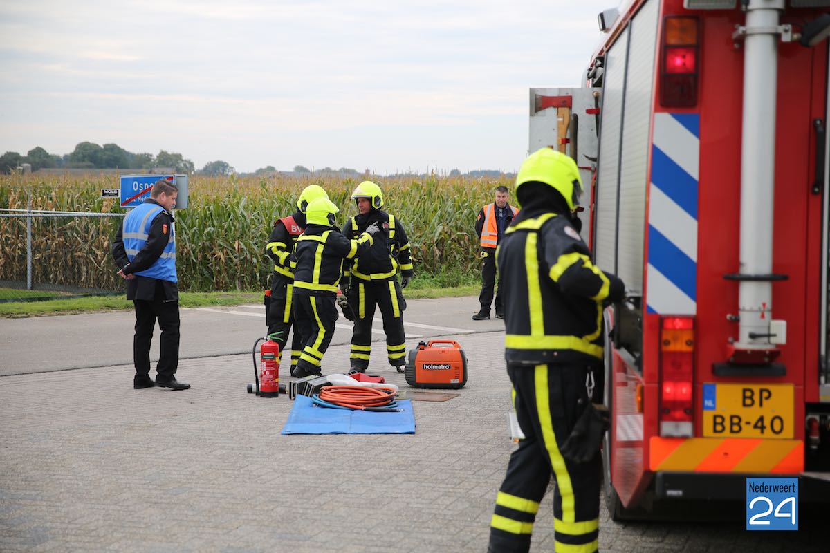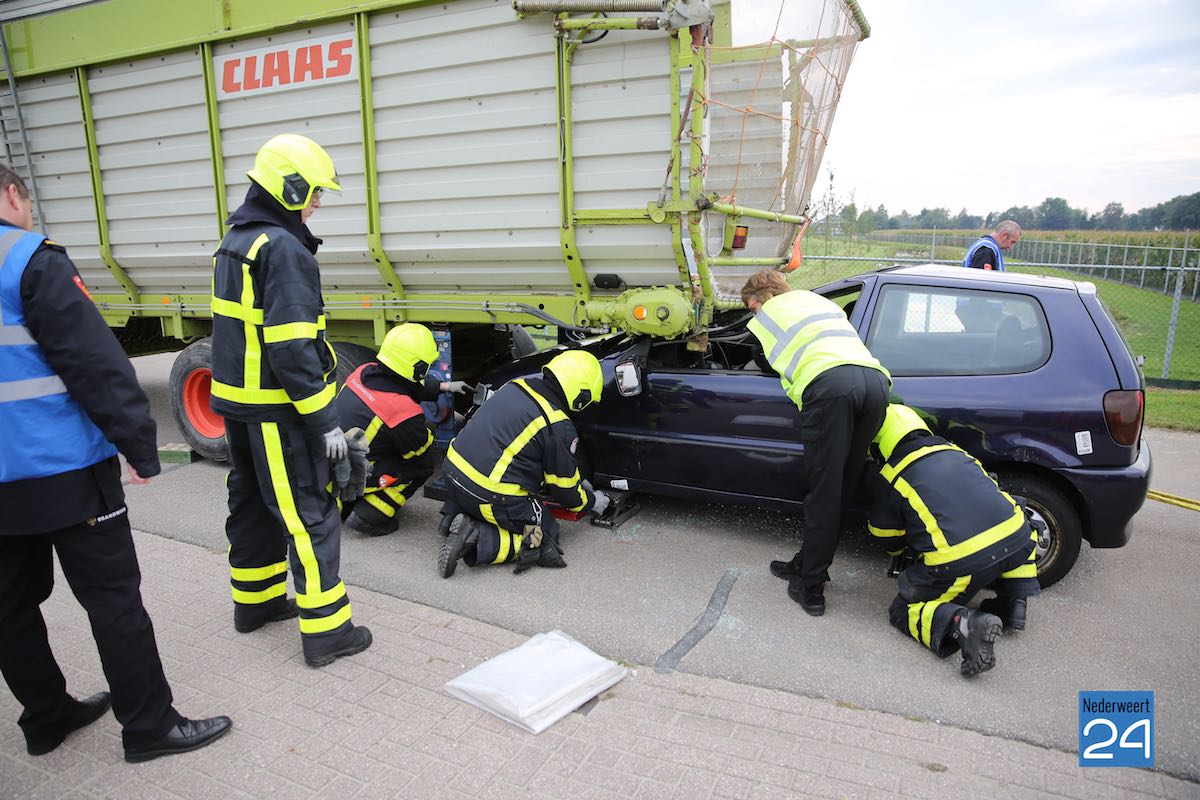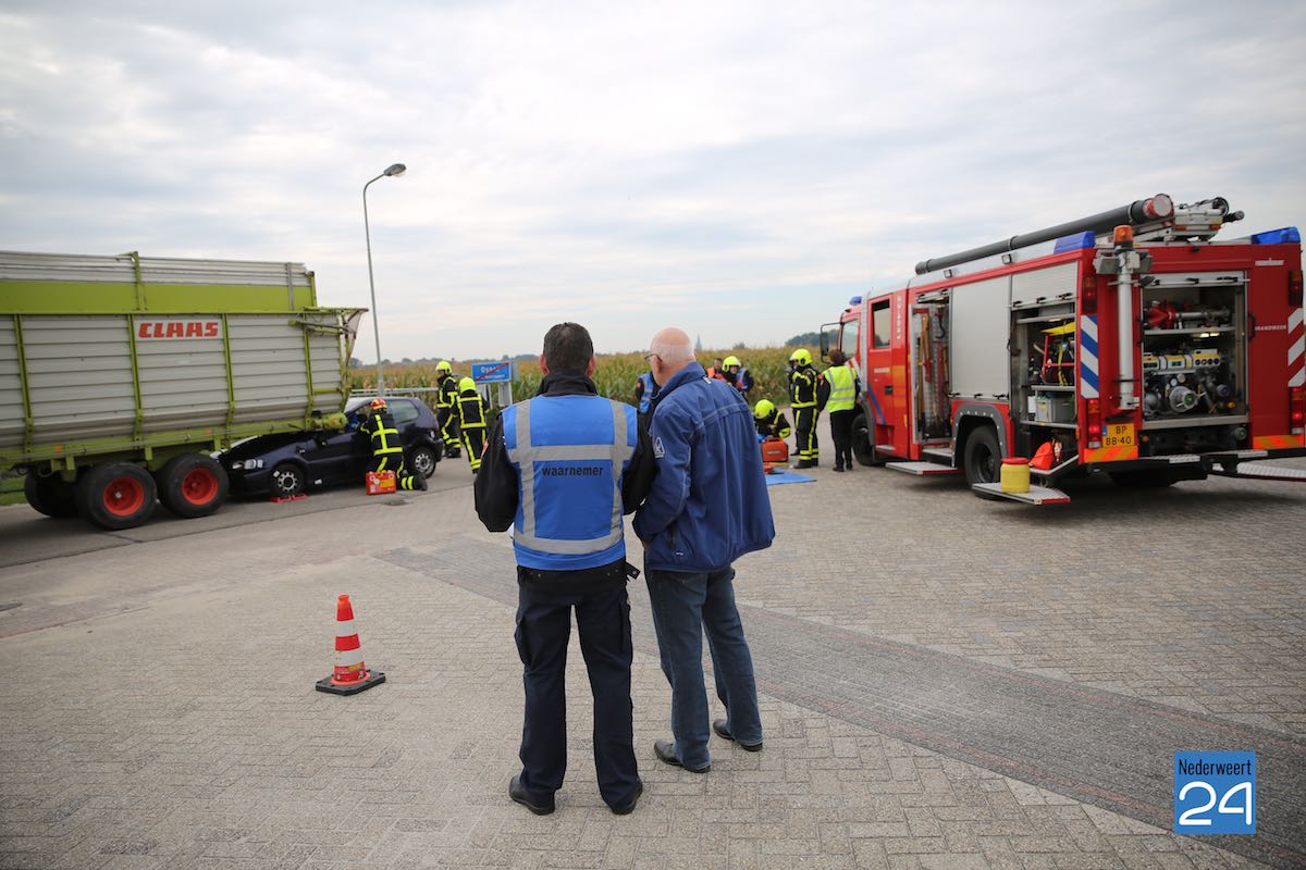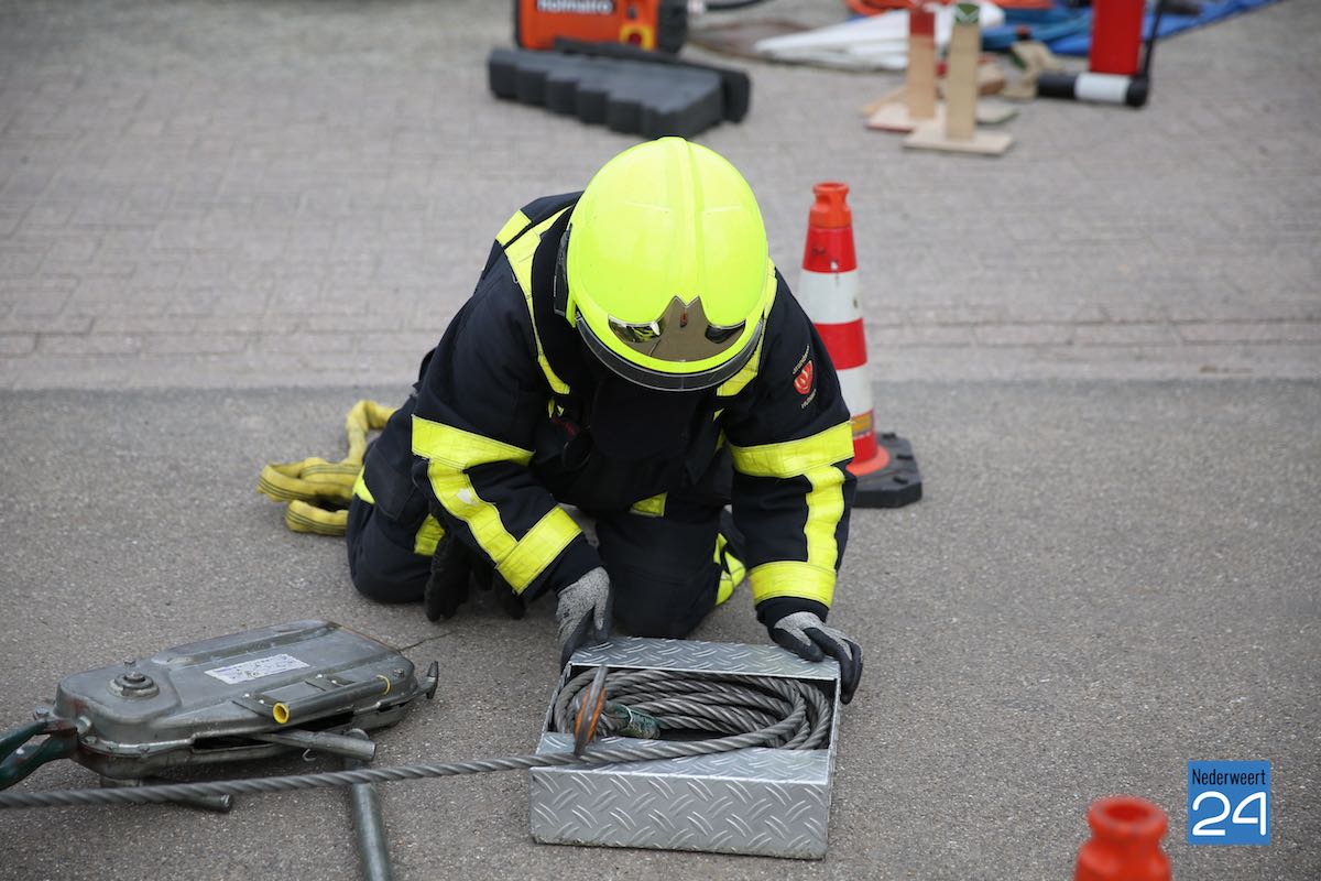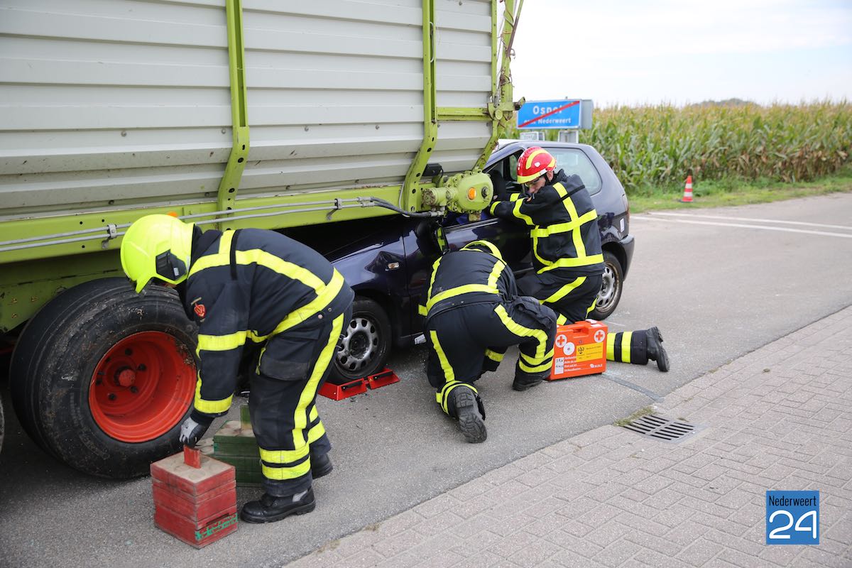 Het scenario in Nederweert speelde zich af aan de Gebbelsweg in Ospel. Hier was een auto achter onder een opraapwagen gereden. De brandweer werd opgeroepen voor een ongeval met beknelling. Eén persoon zat nog vast in de auto. Een klus die de brandweer met de nodige voorzichtigheid moet uitvoeren. Met behulp van dommekrachten (= een soort van krik) werd de machine opgetild waarna met behulp van de staaldraadtakel de auto achteruit gesleept kon worden. Vervolgens kon de brandweer het slachtoffer uit de auto bevrijden.