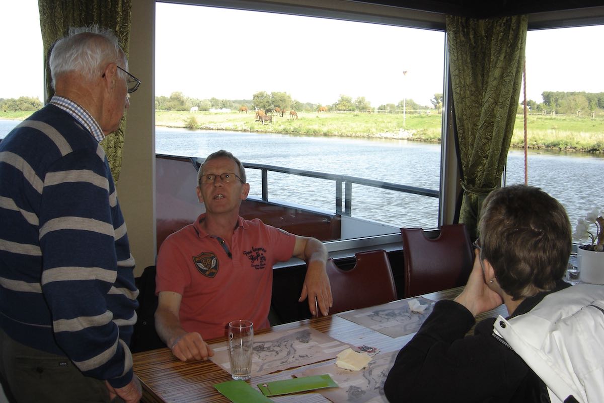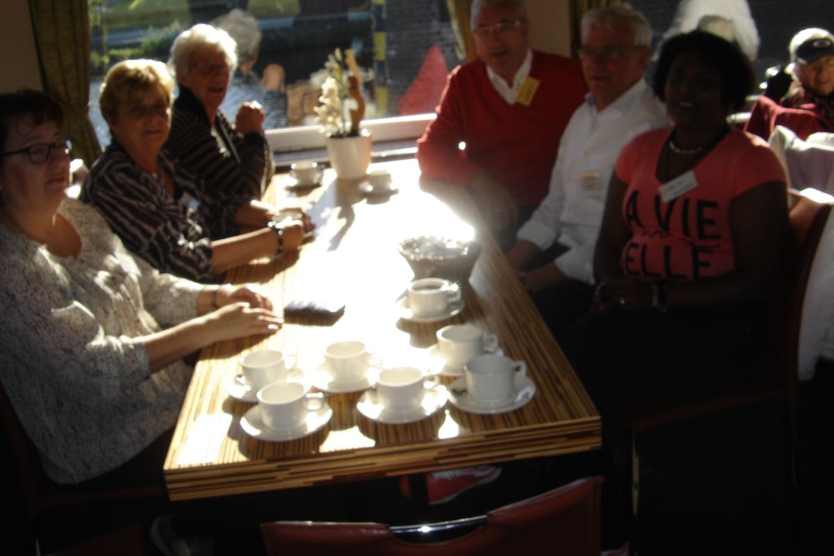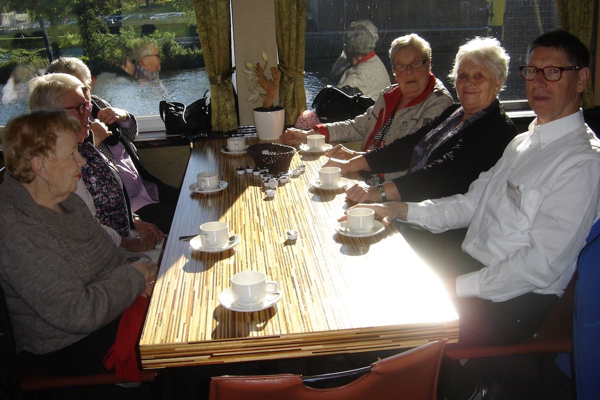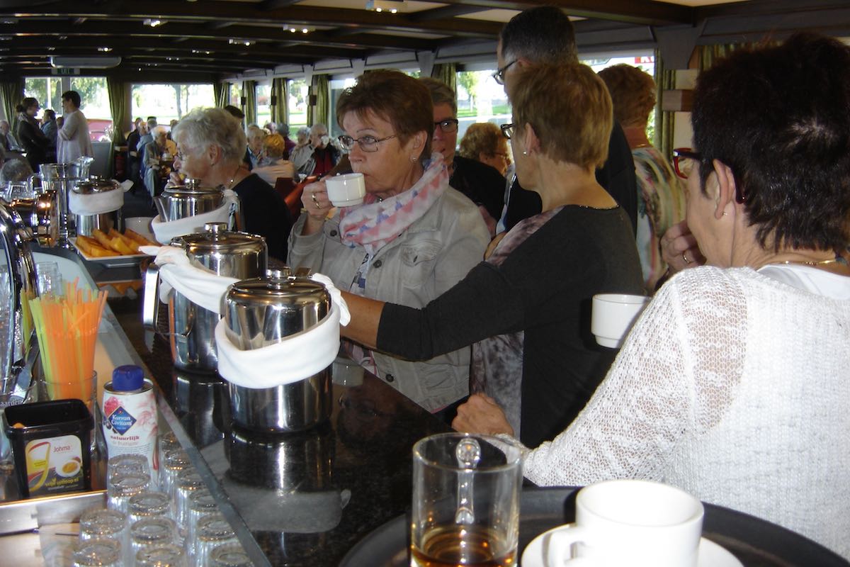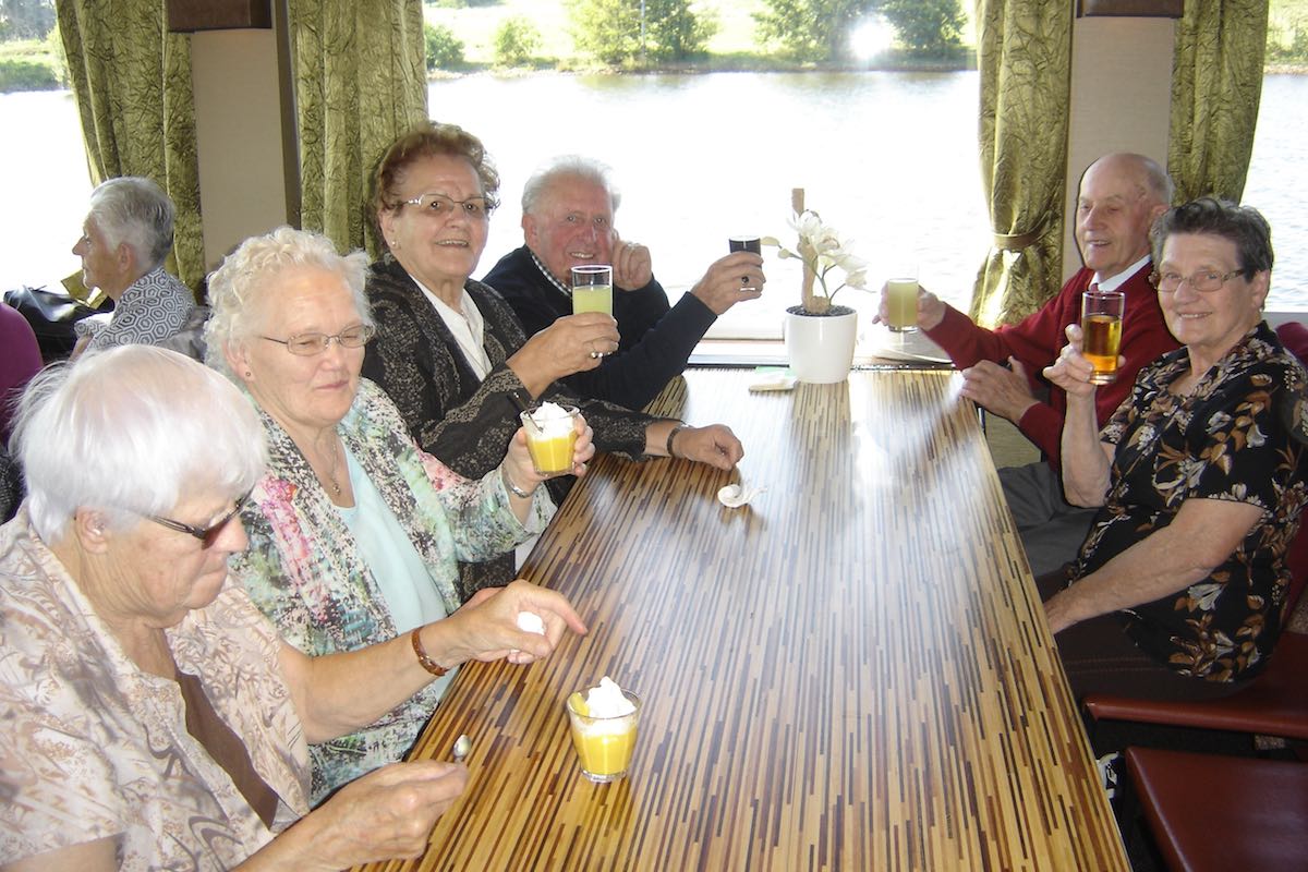 Om 9:00 uur vertrok de bus vanuit Ospel naar de haven in Roermond waar de rondvaartboot klaar lag. Het was prachtig weer en dus was het uitzicht vanaf het water erg mooi. De 188 gasten en vrijwilligers genoten dan ook met volle teugen. Een ieder werd rijkelijk voorzien van spijs en drank en er moest ook weer veel bij gebuurd worden.