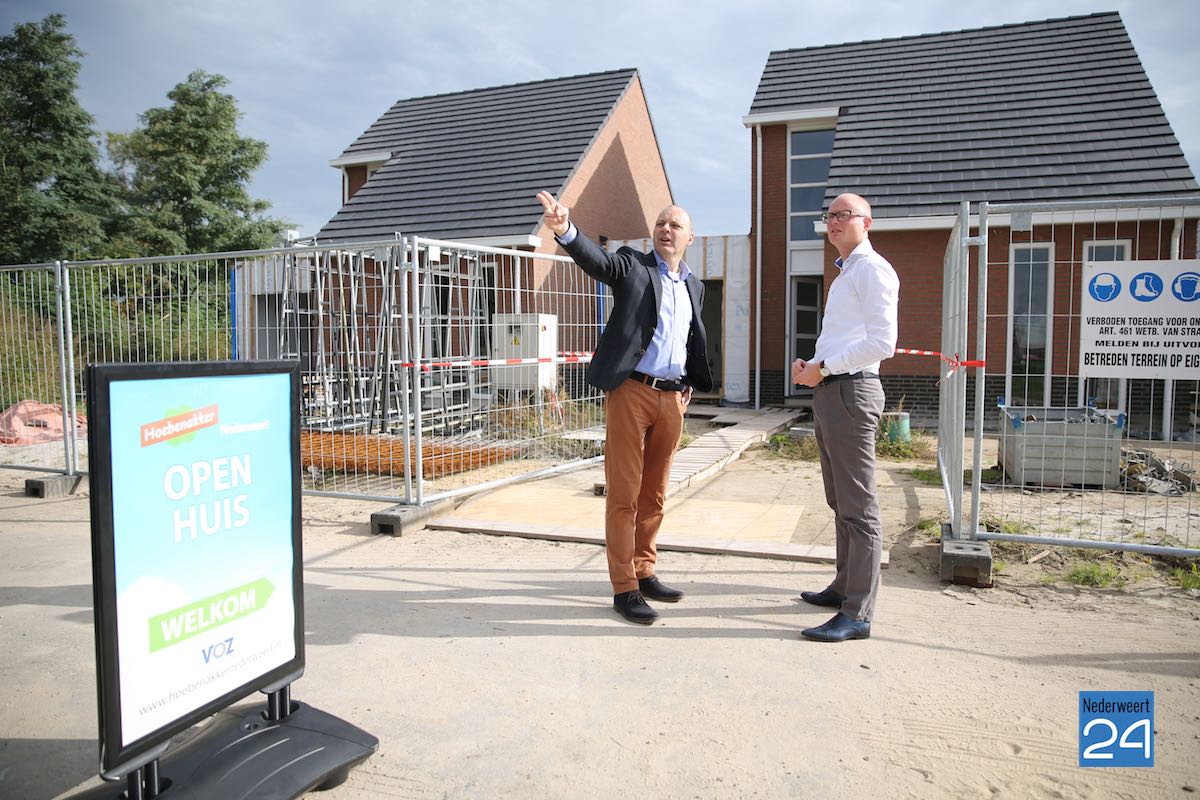 “Deze woningen vormen een prima aanvulling op de woningmarkt voor mensen die nog een keer alles nieuw willen hebben en bewust kiezen voor gelijkvloers en minder tuin” , aldus de wethouder die tevreden de Woonwijk Hoebenakker ziet groeien in al zijn differentiatie. Even verderop staan 12 Brigadierwoningen in de steiger en heeft een Majoor woning net zijn hoogste punt behaald. Van Heur uit Baexem is de fundering van de volgende woningen alweer aan het graven.