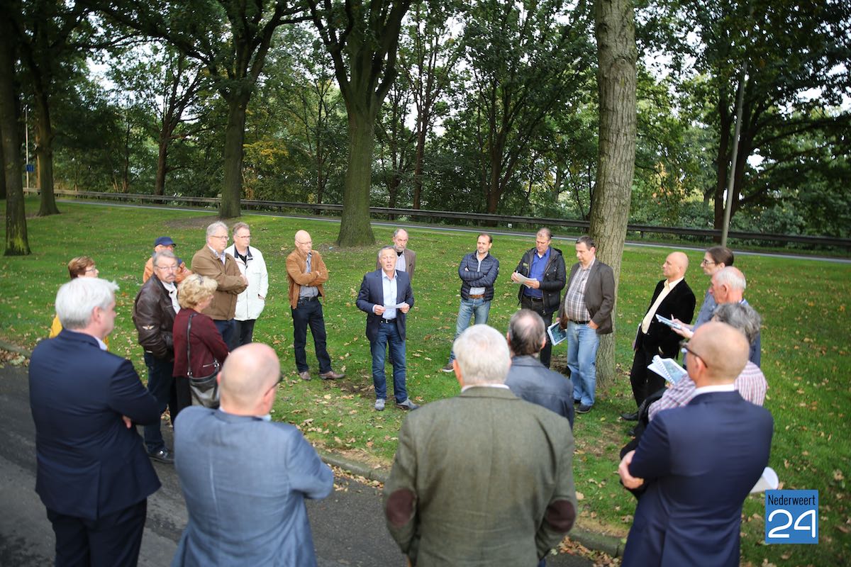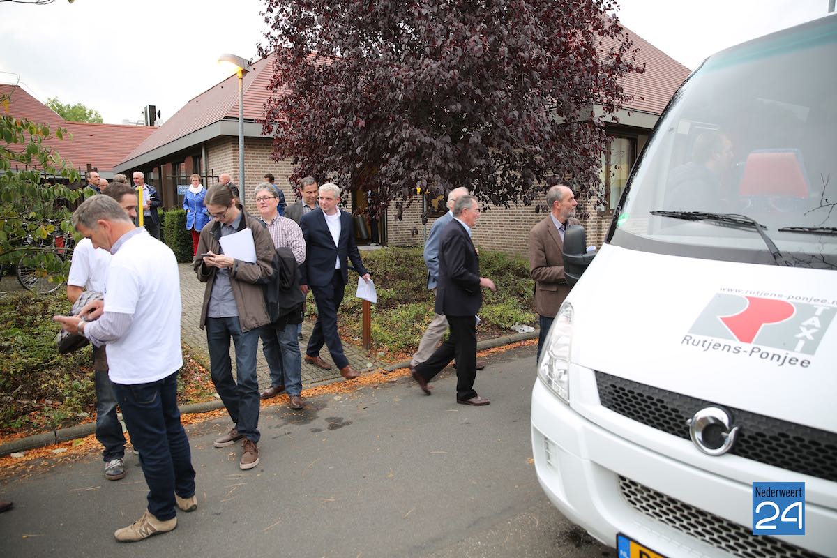 De Actiegroepen “Randweg Nee” en “Werkgroep Verontruste Burgers” mochten elk een kleine 5 minuten hun standpunt verduidelijken in de tijdelijke entree van het gemeentehuis voordat het gezelschap de bus instapte. Voorstanders van de Randweg kregen de ruimte aan het Brugske, op de plek waar volgens het Masterplan een nieuwe verbinding tussen Nederweert en Budschop moet komen. De burgemeester gaf alle drie de stakeholders die ruimte, maar benadrukte dat het nu eigenlijk niet het moment was. De Statenleden moeten ongestoord hun werk kunnen doen.