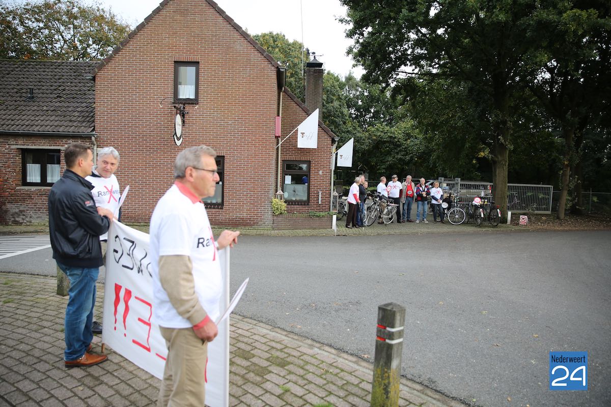 Actievoerders hebben vandaag tijdens een werkbezoek van Gedeputeerde Geurts en Limburgse Statenleden campagne gevoerd. Na overleg met de gemeente mochten zowel voor- als tegenstanders kort een toespraak houden om hun standpunten kracht bij te zetten.