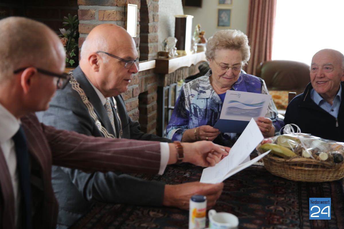 Leden van het college van burgemeester en wethouders van Nederweert hebben woensdag 7 oktober Sjra en An Reemers-de Wit gefeliciteerd met hun 60-jarig huwelijk. Het stel was vereerd met het bezoek. Trots lieten ze de felicitaties van de Provincie en het Koninklijk Huis zien. Samen met hun drie dochters werd stilgestaan bij herinneringen uit vroegere tijden.