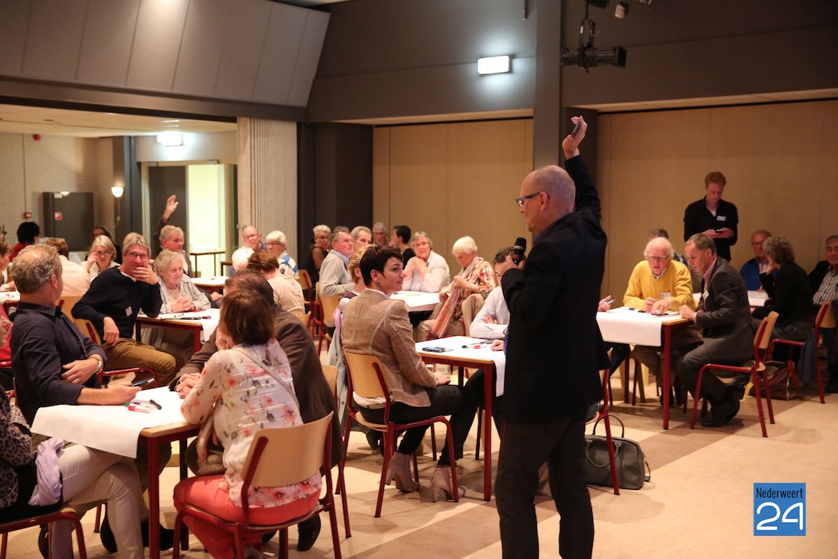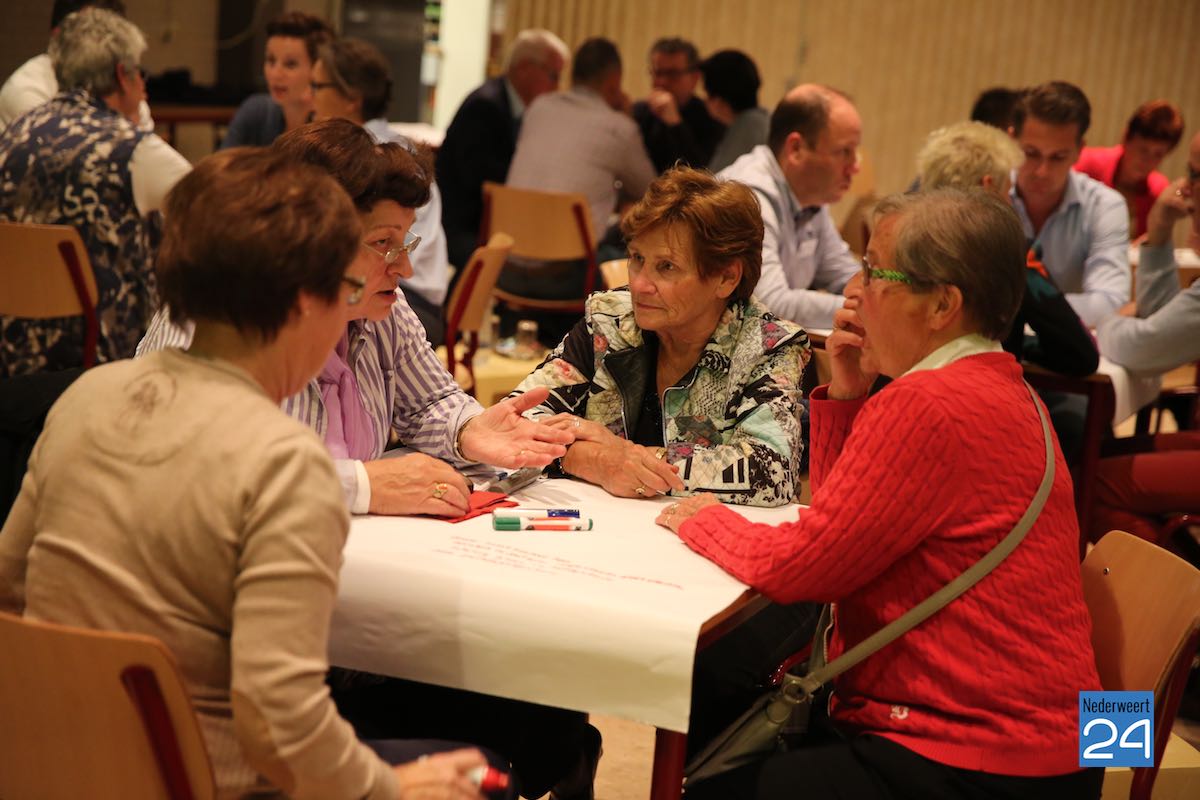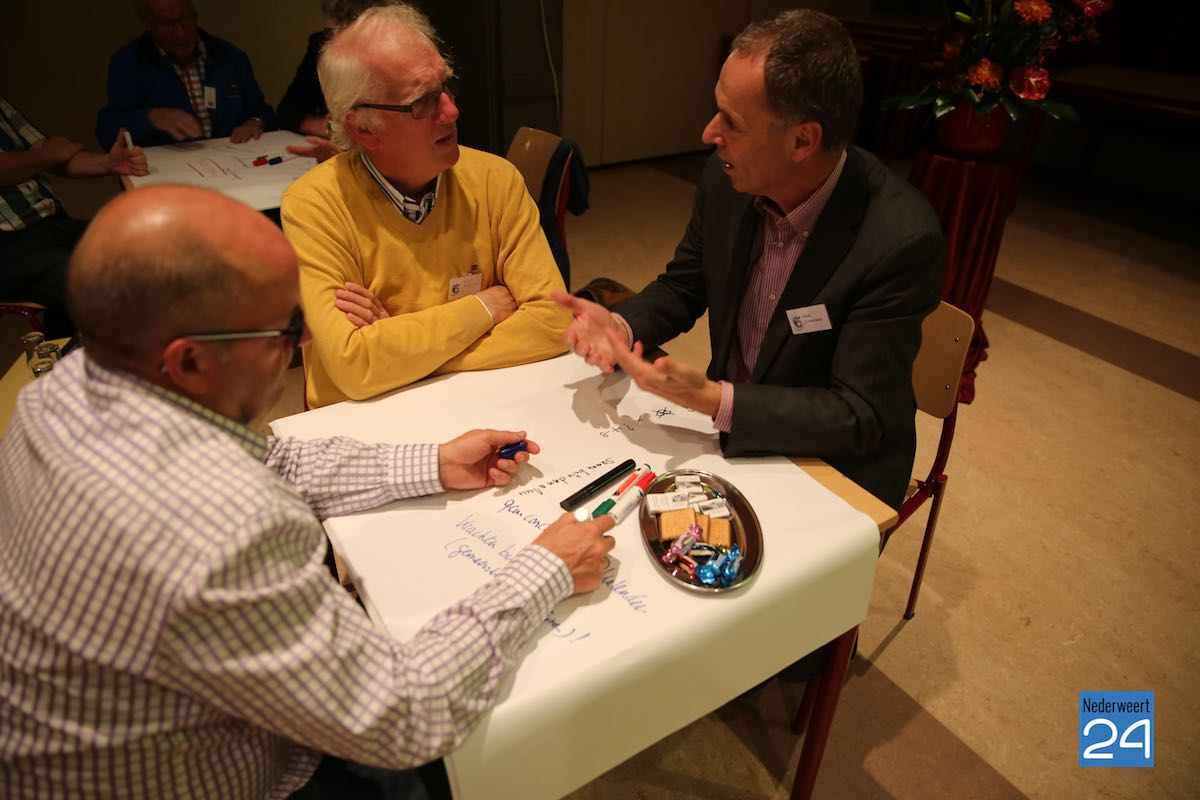 Toekomstcafe Nederweert 6650Een aantal bekende en minder bekende Nederweertenaren hebben zich samengepakt in een regiegroep om samen aan de slag te gaan met de toekomst van Nederweert. De regiegroep bestaat uit o.a.: Thieu Knapen, Leny Verheijen, Henk Kluskens, Thieu Heijltjes en Niek Creemers. Naar aanleiding van de startbijeenkomst op 8 september in restaurant Bi-j Siem hebben zij dinsdagavond een Toekomstcafé georganiseerd om te praten over de toekomst van de kern Nederweert. Met ruim 85 deelnemers kan men gerust spreken van een succesvolle avond.