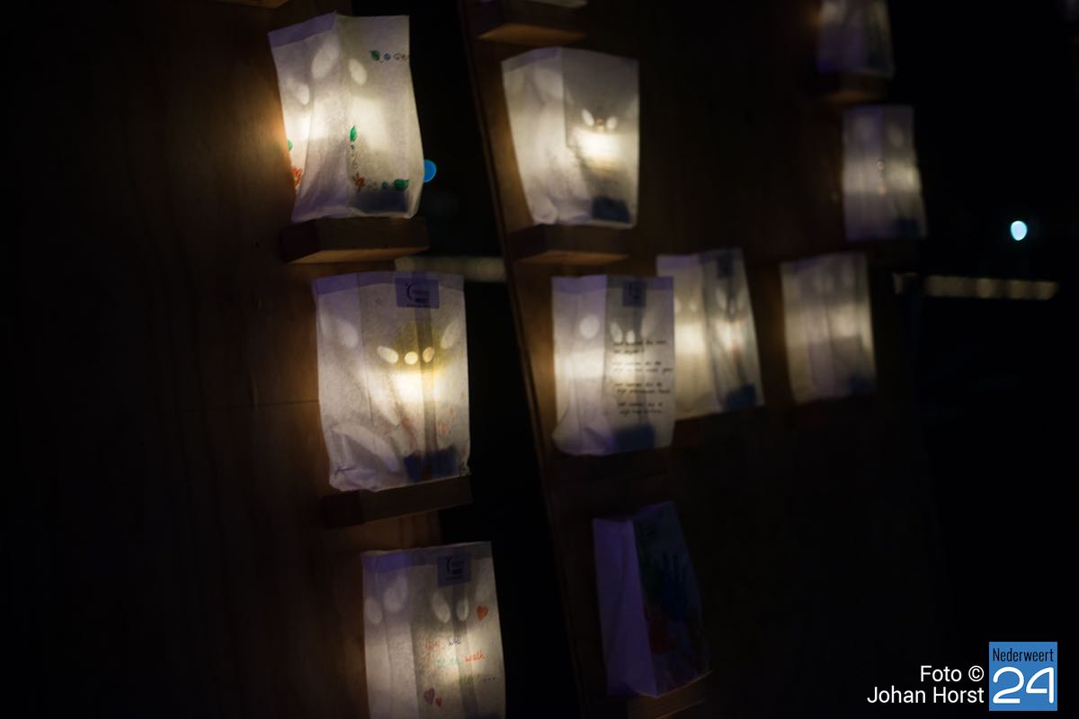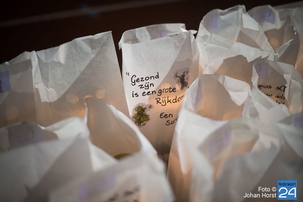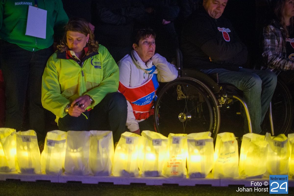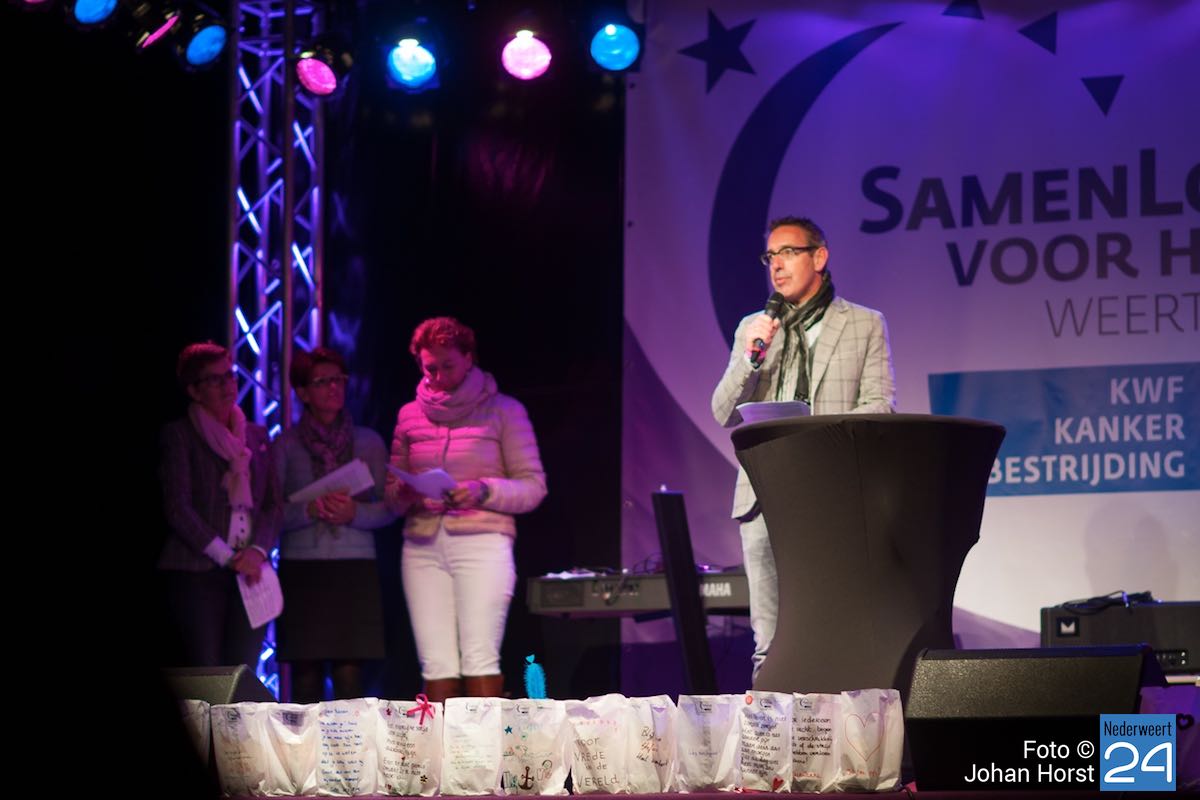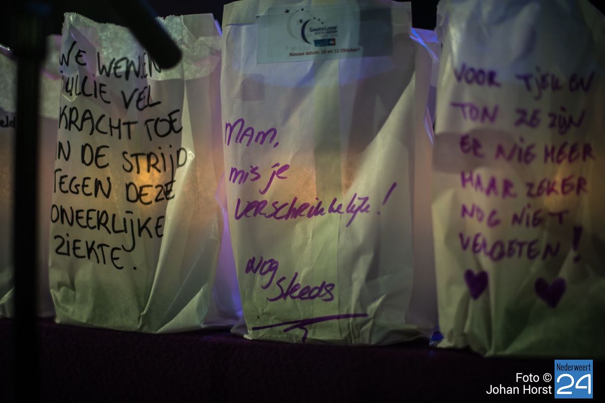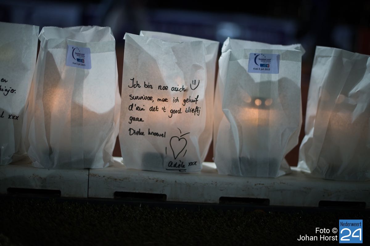 Tijdens de kaarsenceremonie werd het stil op de atletiekbaan tijdens SamenLoop voor Hoop bij het College in Weert. Naast de baan stonden honderden zakken met daarin een kaart. Op elke zak stond een persoonlijke boodschap. “Op de grenzen van het leven”, zoals Maarten v.d. Weijden het verwoordde tijdens zijn voordracht.