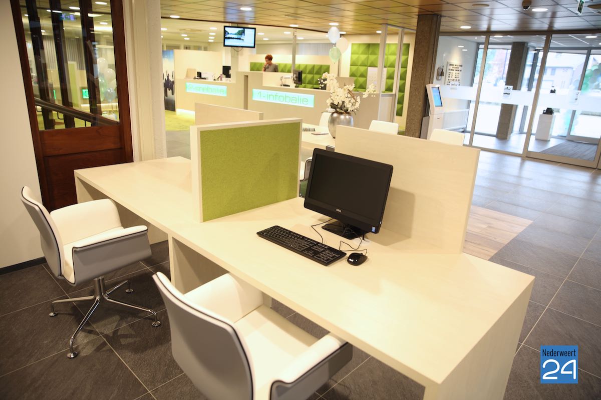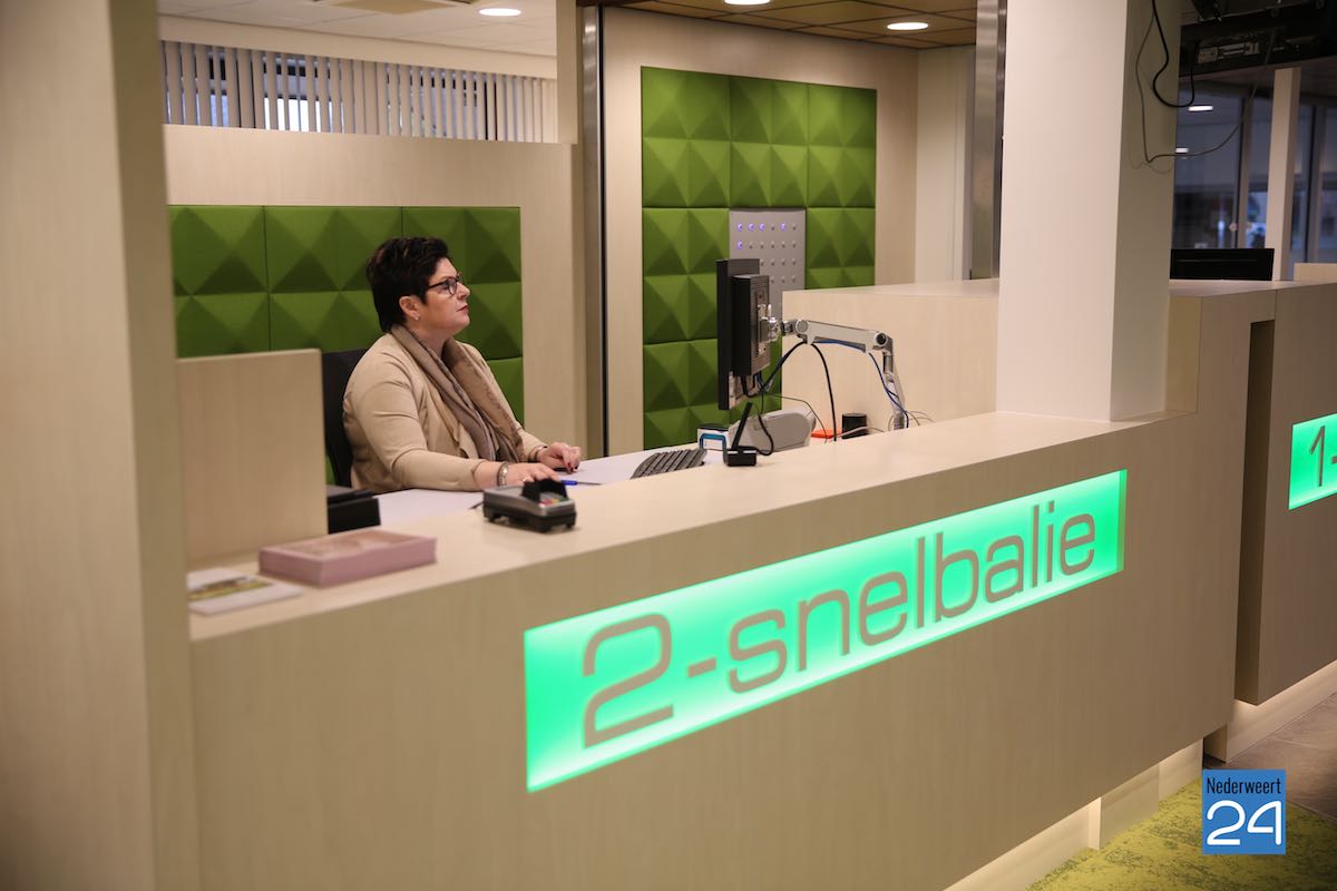 Wanneer je nu de vernieuwde publiekshal bezoekt, kun je je meteen melden bij de informatiezuil. Via een keuzemenu kun je aangeven wat de reden van je bezoek is. Je ontvangt dan een volgnummer en kunt direct naar de juiste balie of plaatsnemen aan de nieuwe leestafel of in de zit- of internethoek. Omdat de gemeente voornamelijk op afspraak werkt, zal de wachttijd minimaal zijn. Je wordt dan opgeroepen aan een van de nieuwe balies of in een nieuw ingerichte spreekkamer.